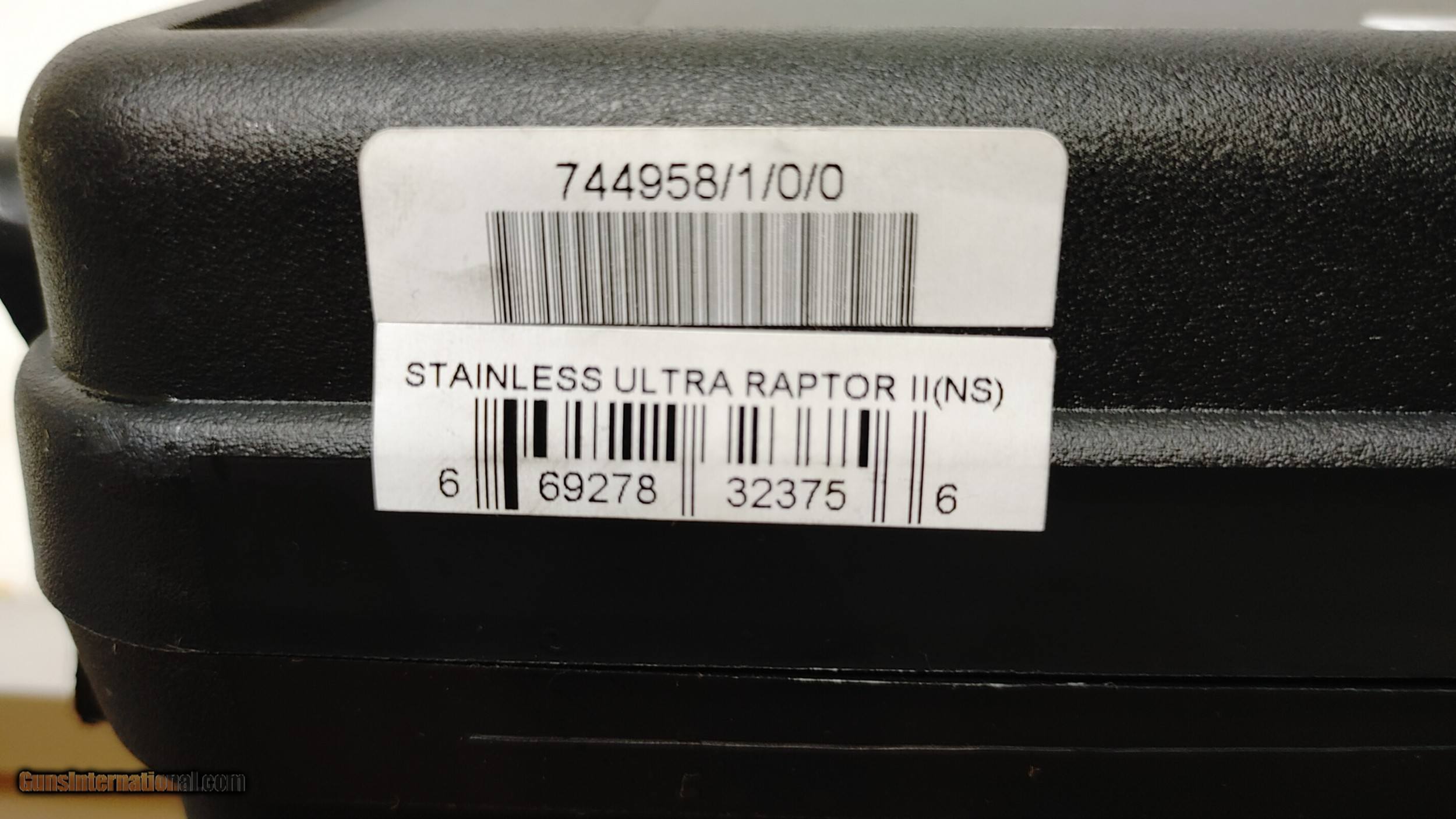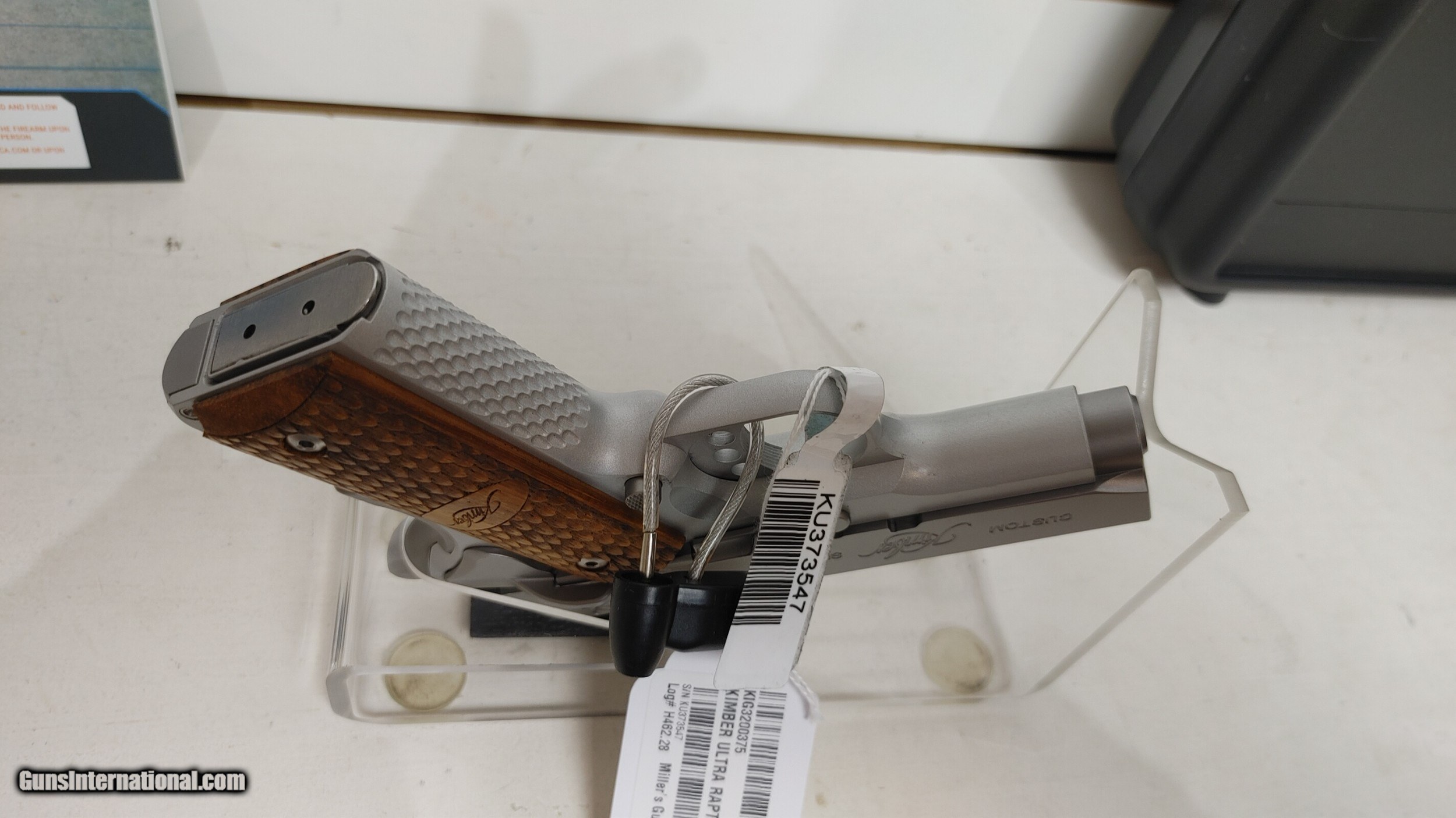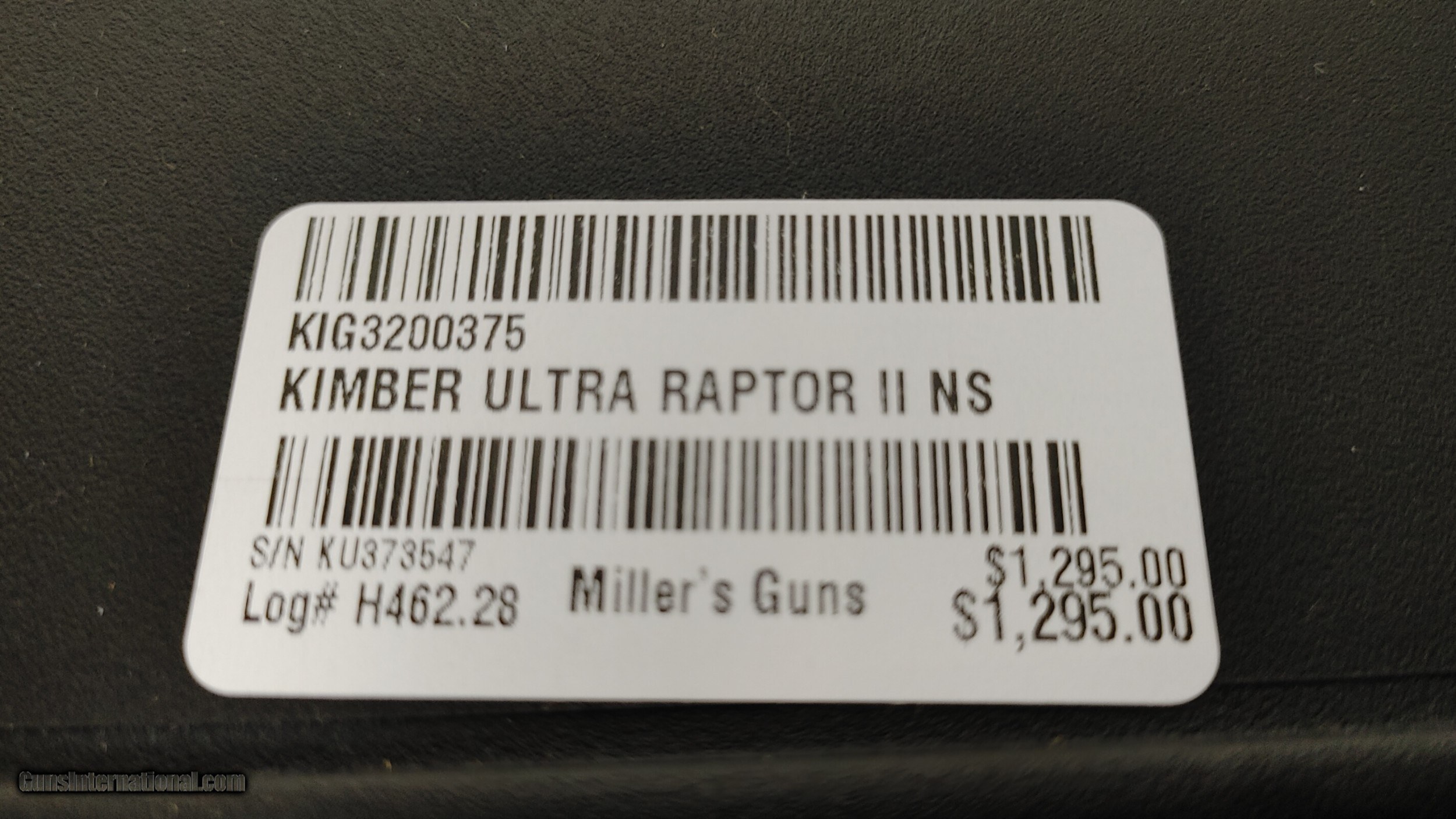 Description: new Kimber Stainless Ultra Raptor II .45ACP 3-inch 7rd Stainless new in hard plastic case UPC669278323756 Caliber.45 ACP ActionSEMI AUTO Capacity7 ROUNDS Barrel Length3" BARREL Weight1.5 LBS. FinishSATIN STAINLESS SOLD Serial Number: KU373547 |