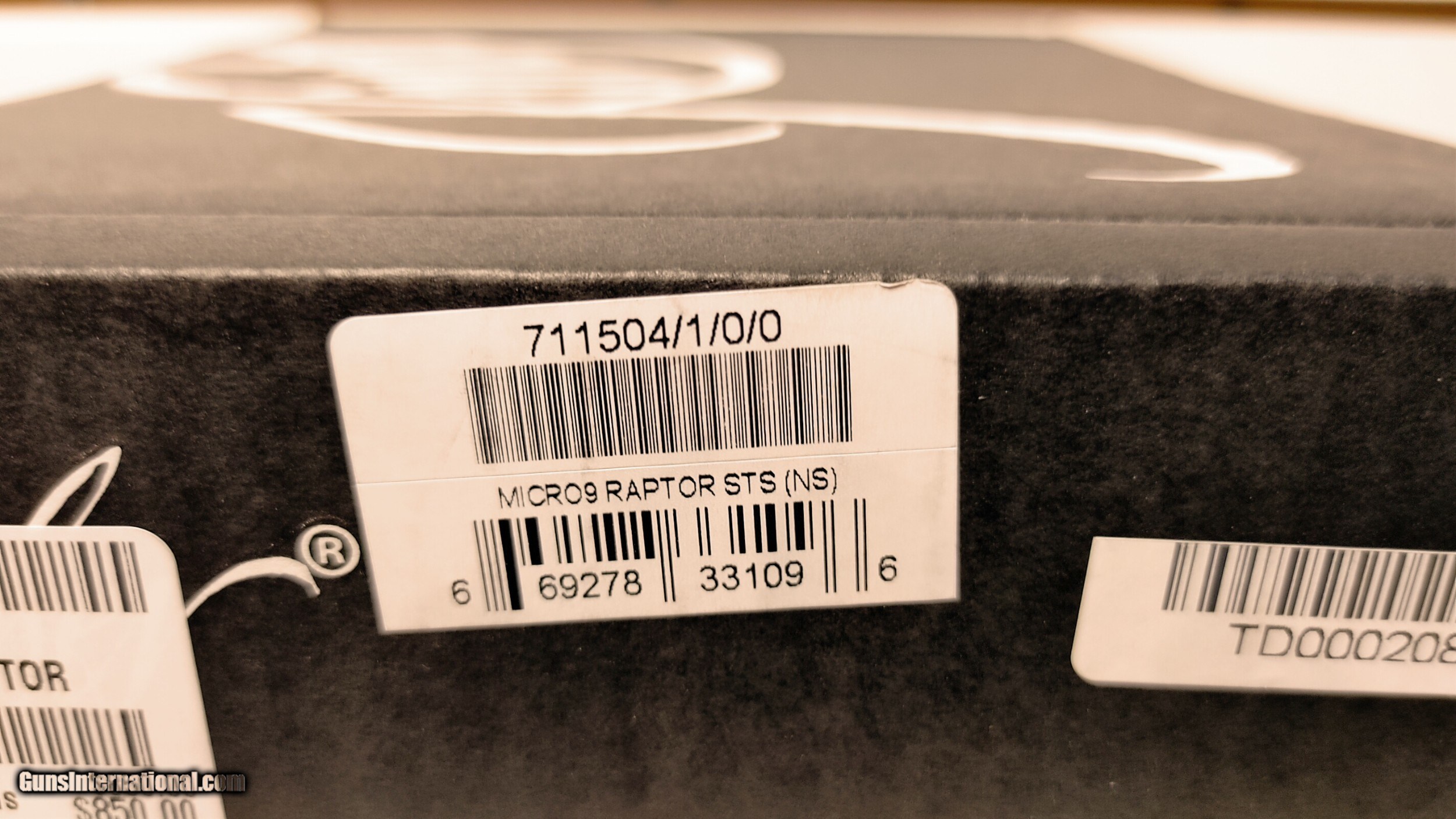 new Micro 9 Stainless Raptor 9mm 3" barrel 1 magazine lock manual new in box