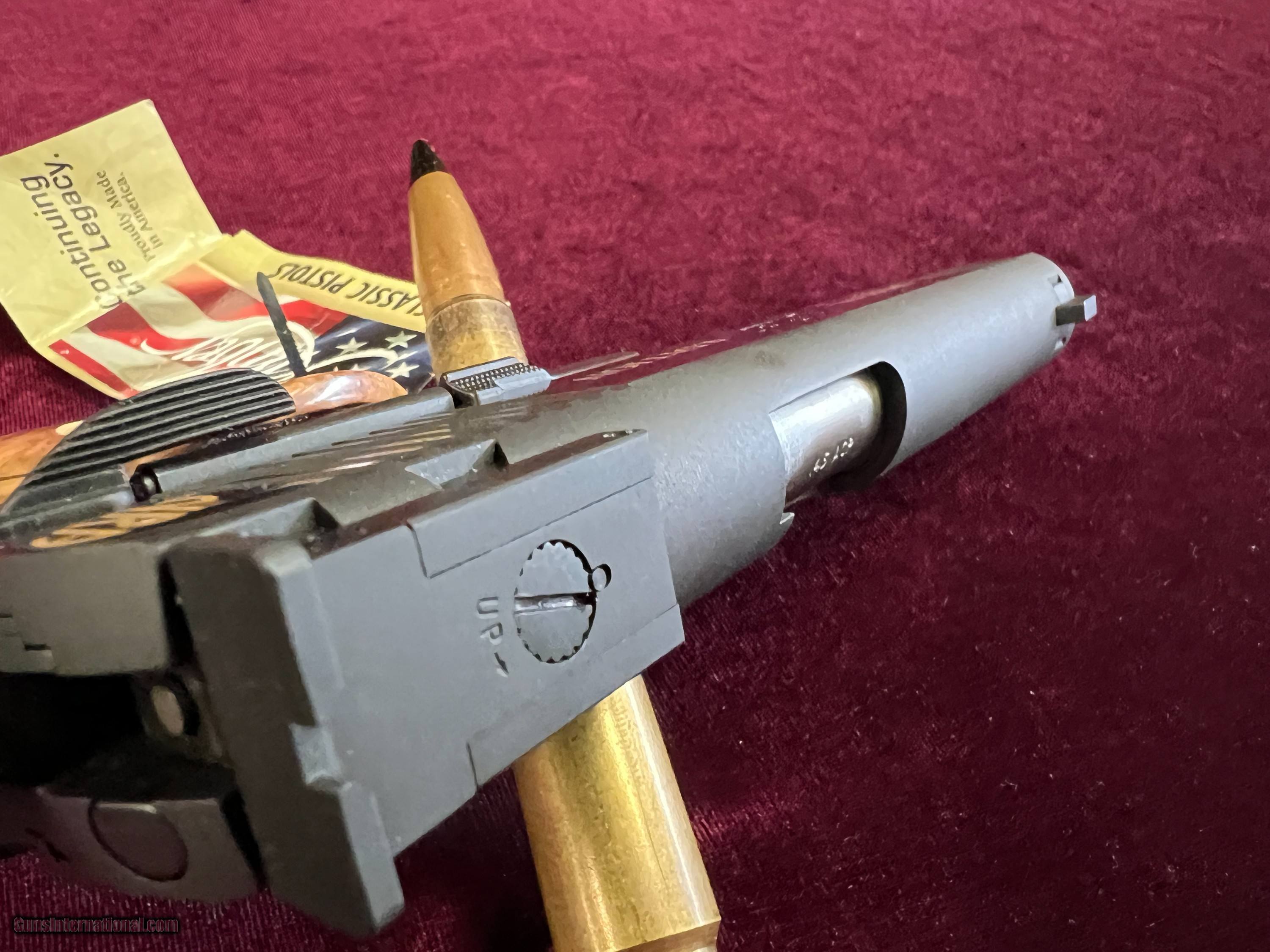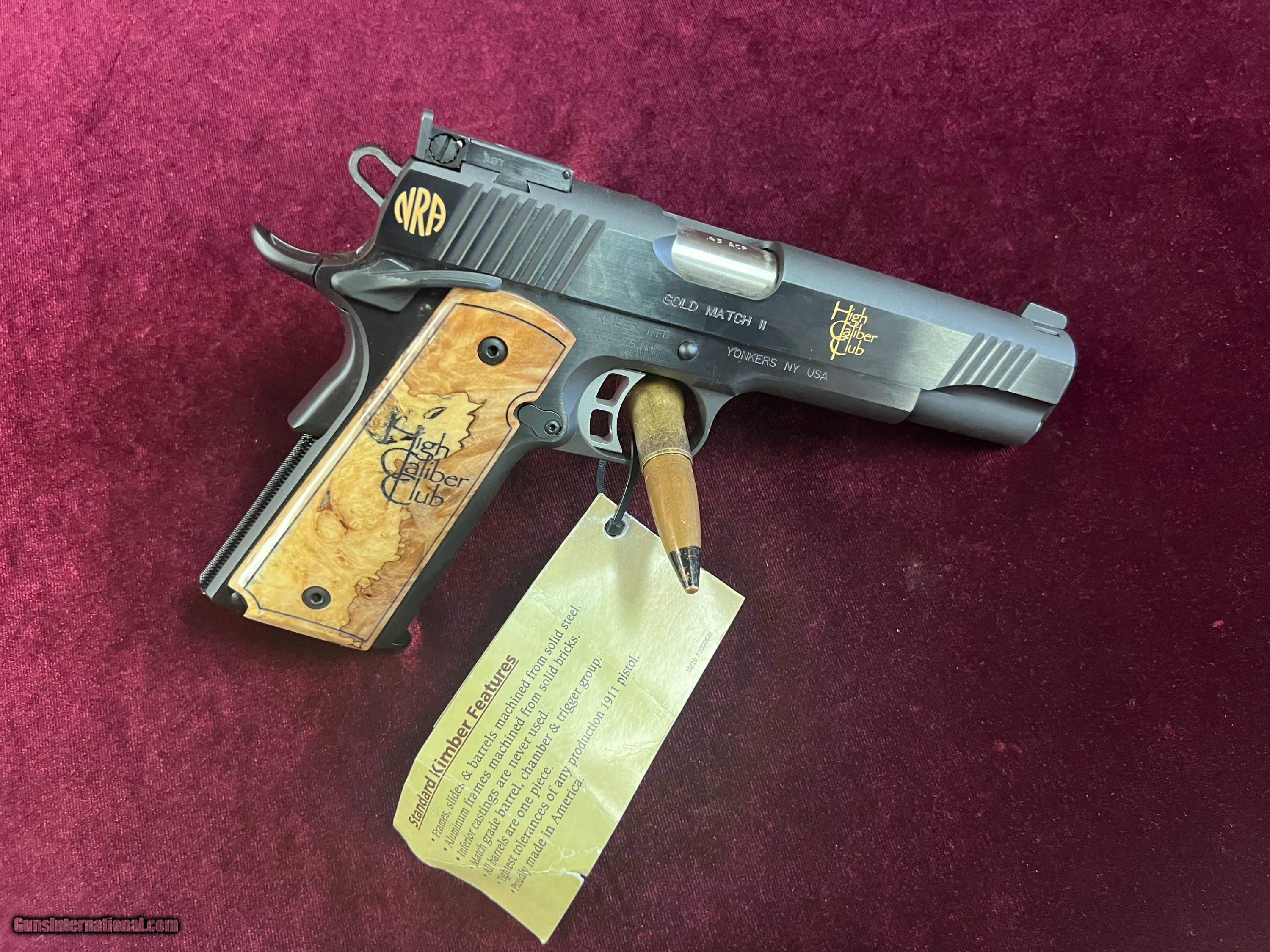Description: Hello all. In this listing, we are selling a Kimber Gold Match II chambered in 45ACP. This specific 1911 is a limited edition NRA High Caliber Cub Gold Match. The gun is in mint condition, and has been fired very little. Both the blueing and the grips are also mint with no wear whatsoever. A fantastic buy for any collector. If you have any questions or would like additional photos please feel free to contact us. We charge 3% on all card charges. Buyer pays shipping. We are selling this beautiful gun for $1799.00 SOLD Handgun Caliber: .45 ACP (.45 Auto) Manufacturer: Kimber Model: Gold Match II Serial Number: HCC-054 Condition: Mint |