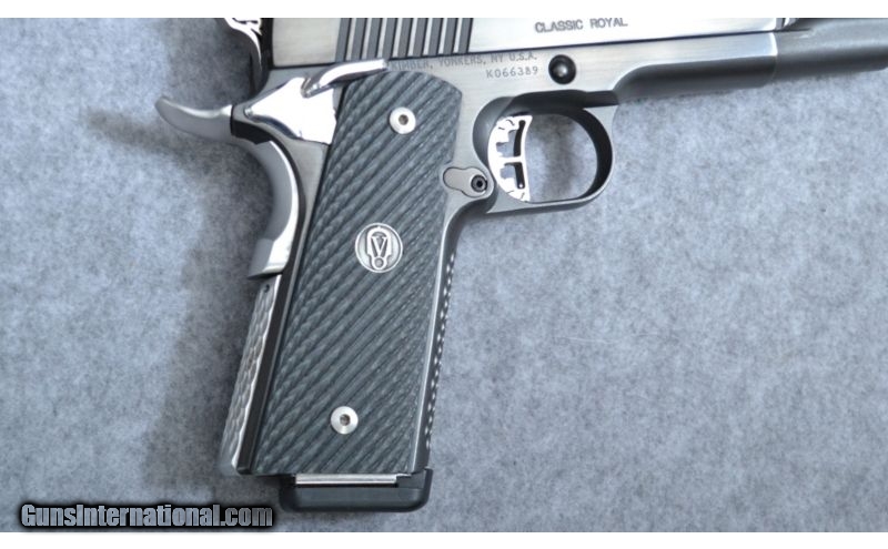 Description: Volkmann Precision Upgraded Gun on a Kimber Frame SOLD Caliber Info: 45 ACP Metal Condition: Excellent Wood Condition: Excellent Bore Condition: Bright & Shiny Barrels: 5 Inch Triggers: Silver Straight Adj Weight: 2 Lbs 8 Oz Sights: Front: Fixed Gold Bead Rear: Fixed Extras: Ambi Safety Item Location: Thornton, CO |