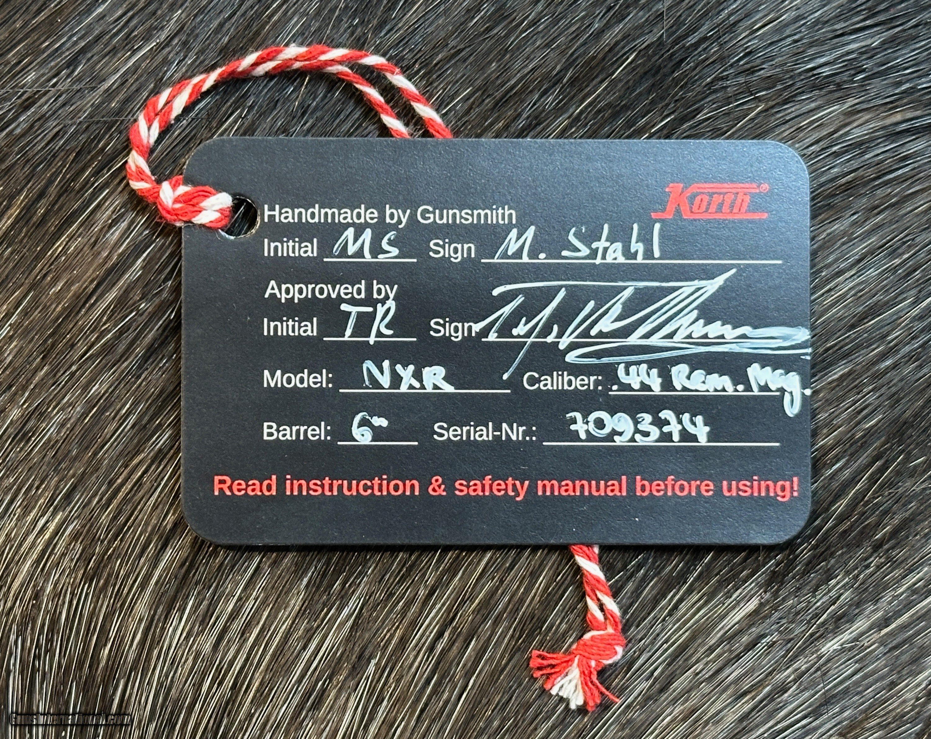 Description: NEW KORTH NXR 6" 6-SHOT 44 REMINGTON MAGNUM REVOLVER W/ FACTORY COMPENSATOR LAYAWAY AVAILABLE: $1,000 DOWN AND 6-MONTHS TO PAY OUT - TO BEGIN THE LAYAWAY, CONTACT JD AT 405/822.1564. The Korth NXR brings a powerful six-shot .44 Magnum into Korth’s legendary lineup of precision revolvers. The NXR delivers exceptional performance and versatility in a package built to handle the most demanding shooting conditions. The NXR’s frame features an integrated Picatinny rail for mounting optics, while the ventilated barrel housing promotes faster cooling during extended firing sessions. Finished in a rugged black Diamond-Like Carbon (DLC) coating, the NXR offers both striking aesthetics and exceptional durability. A second Picatinny rail mounted below the barrel provides even more options for customization, allowing shooters to configure the NXR for their specific needs. Designed with precision in mind, the NXR comes equipped with an adjustable rear sight and front sight side panels that can be easily removed and replaced, making it adaptable across various shooting disciplines. The revolver is finished off with a beautifully crafted Turkish Walnut grip, blending timeless elegance with hard-hitting performance. Whether you choose the 4" or 6" barrel, the Korth NXR stands as a testament to world-class German craftsmanship — offering a .44 Magnum revolver that combines cutting-edge design, unrivaled precision, and the legendary Korth quality that serious shooters and collectors demand. FEATURES OF THIS GREAT CUSTOM REVOLVER INCLUDE: