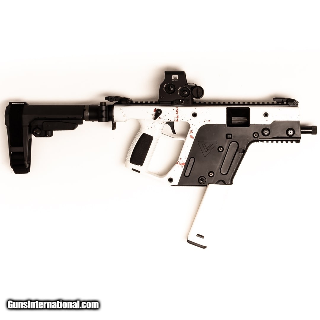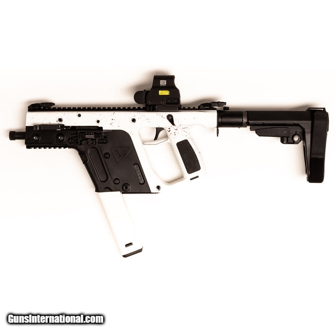Description: Guns Listing ID: 569230 The Kriss Vector SDP-SB is a pistol variant of the original Kriss Vector submachine gun. Fantastic for a number of applications, this model is chambered in 45 ACP. It‚‚s equipped with a pistol brace, threaded barrel with protector, pop-up sights, and an EOTech holo sight. Purchase includes the original manual, three 24-round magazines, three 33-round extended magazines, cleaning kit, and the back cap. SOLD Manufacturer: KRISS Model: VECTOR SDP-SB Caliber Info: .45 ACP Condition: Used - Certified Barrels: 5.5 BARREL Finish: CUSTOM |