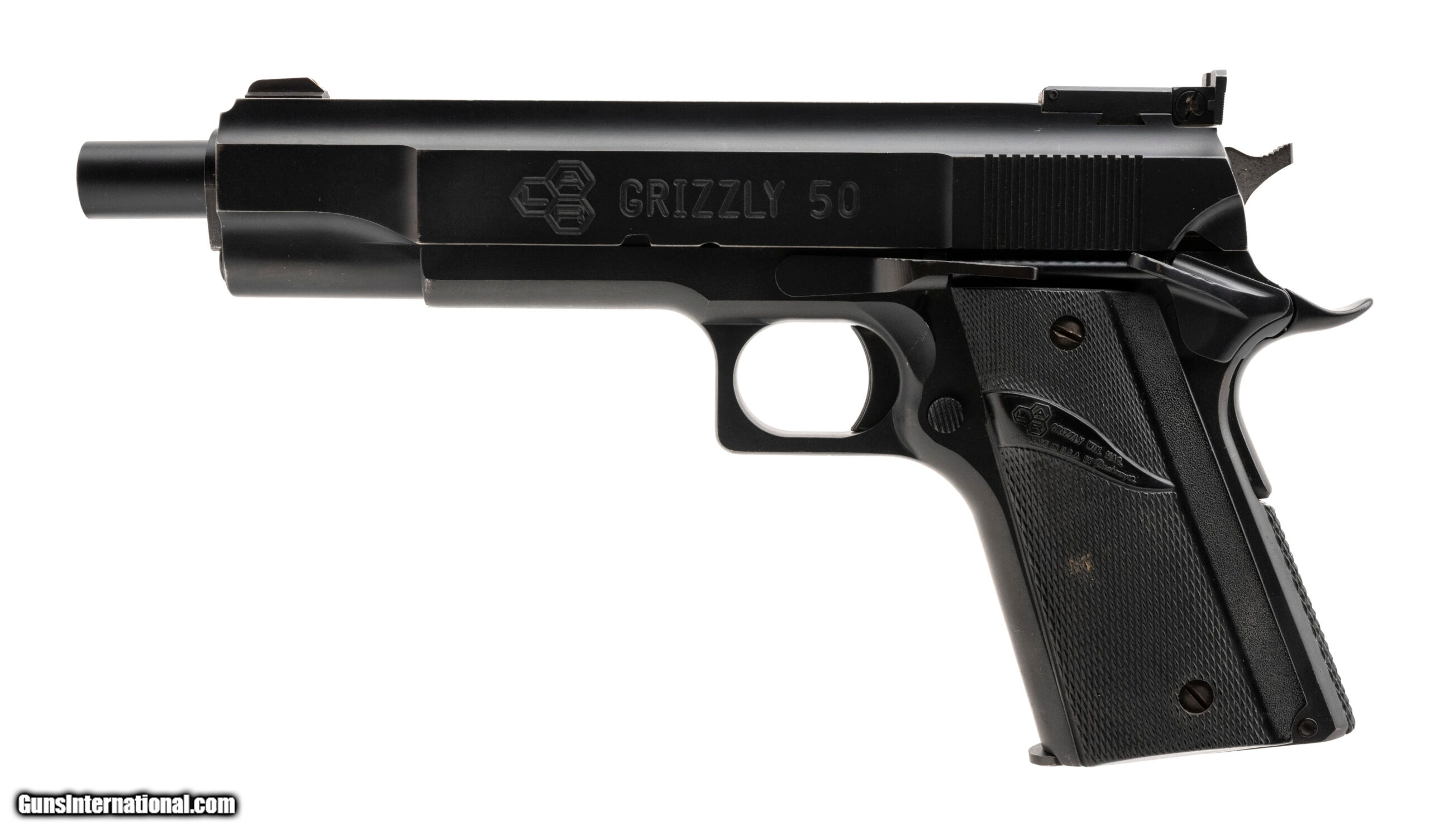 Description: "SN: V000283. 1990's vintage .50 AE with a 6.5"" barrel. Scarce and desirable .50 cal Grizzly autoloader. Comes with two conversion kits, one in .357 Magnum and the other in .357/45 GWM, Grizzly’s proprietary bottle neck round. Everything is in very good condition with original boxes. A neat set of hard to find items. SOLD |