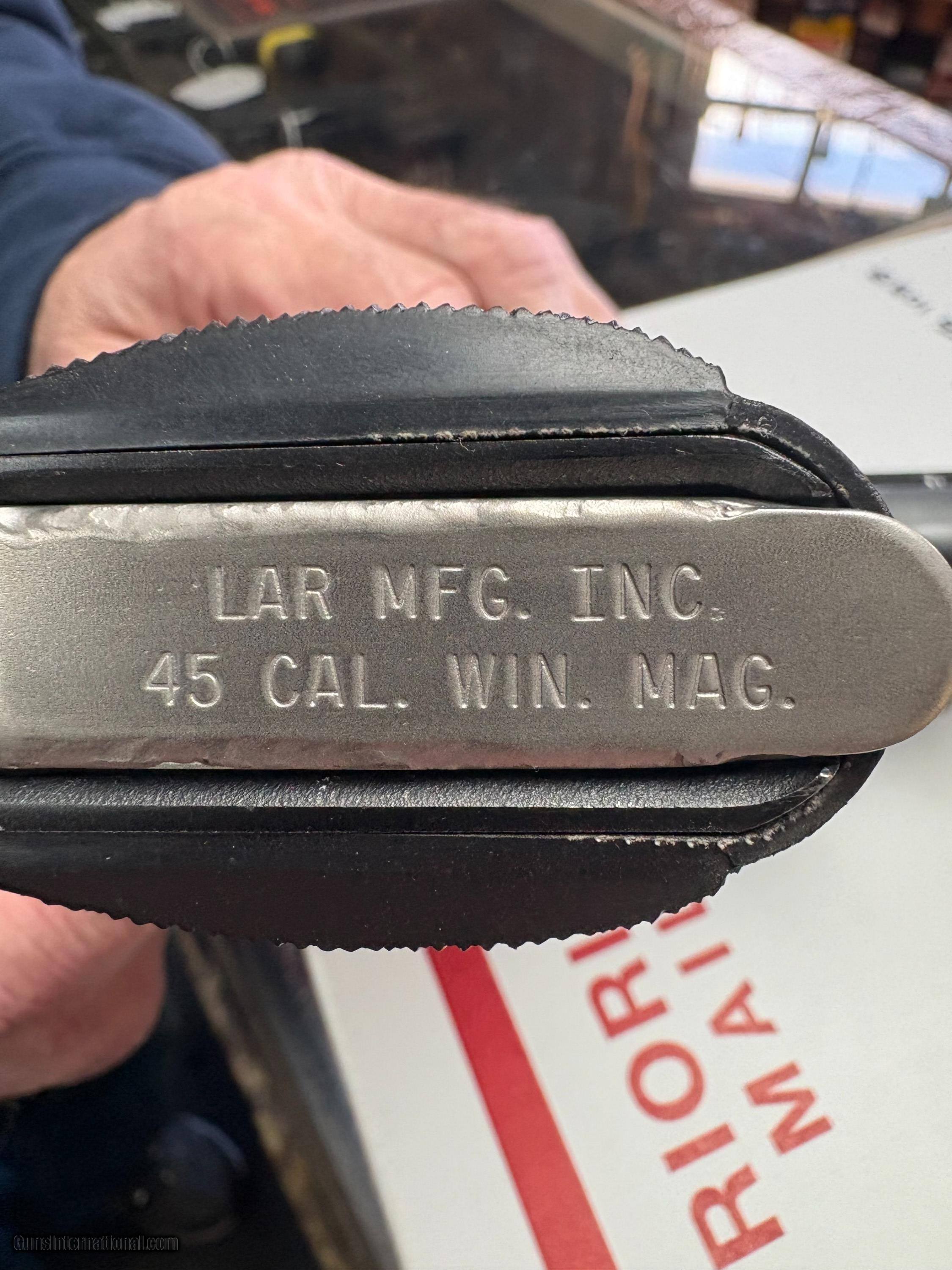Description: Up for in very good condition L.A.R. Grizzly Chambered in 45 Win Mag 5.25" Barrel . no CA sales 2000.00+ shipping Handgun Caliber: .45 Winchester Magnum Manufacturer: L.A.R Model: Grizzly Serial Number: A-001554 Barrel Length: 5.25 Condition: Very Good Metal Condition: Very Good Bore Condition: Excellent Price: $2,000.00 Shipping: $45.00 Contact Seller |