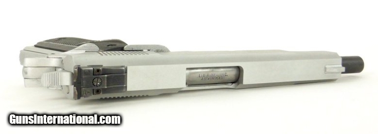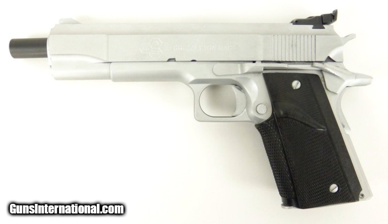 Description: " LAR Grizzly MK I .45 Win Magnum caliber pistol. Magnum autoloader with 6” barrel and satin chrome finish. SOLD |