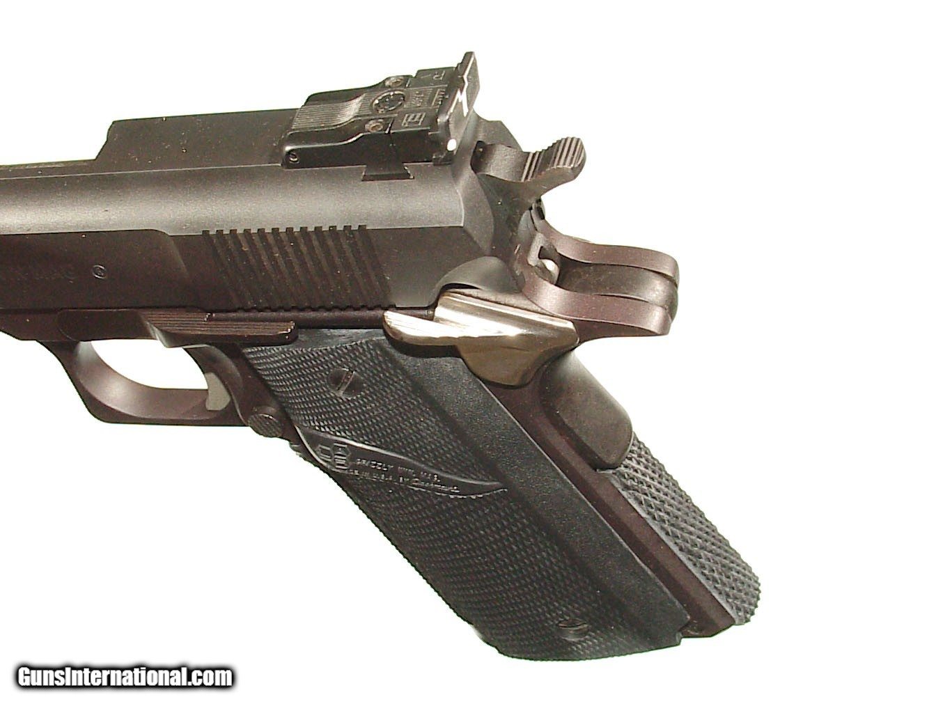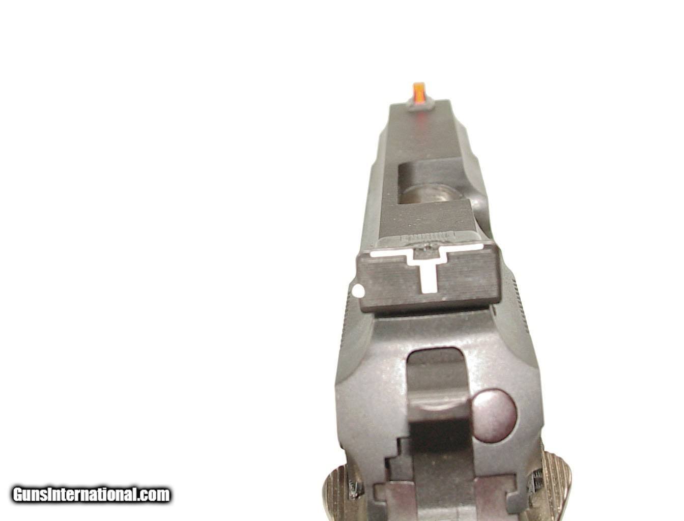 Description: .45 Win Mag caliber, 6.5" barrel. Built on the Colt 1911 concept auto pistol with grip safety. Finished in matte black with checkered rubber combat grips and sights. As new unfired in it's original factory box. SOLD |