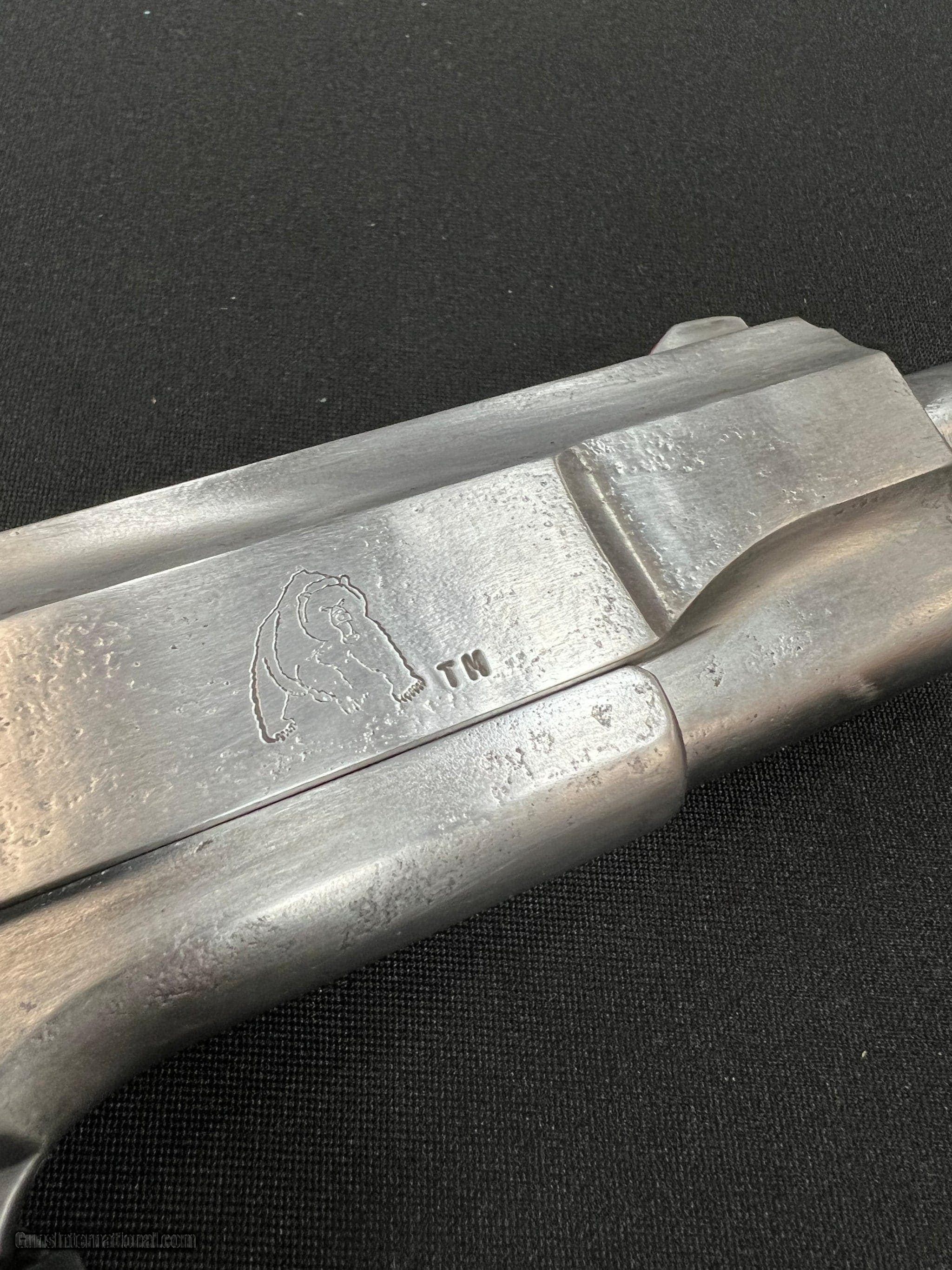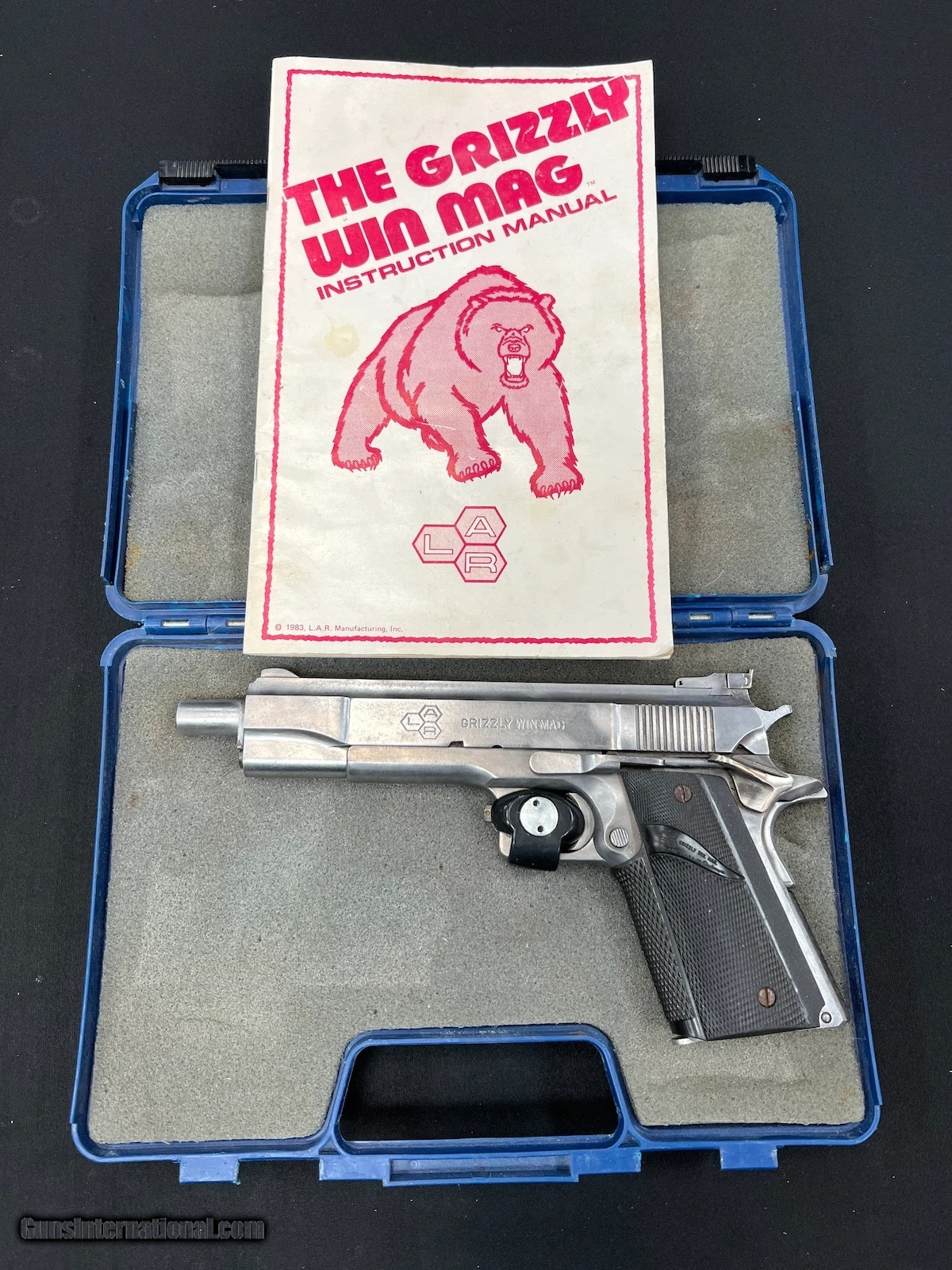 Description: Guns Listing ID: 748080 This unique handgun from LAR manufacturing is chambered in 45 Win. Mag. With one magazine and instruction booklet in original case. 4/10 condition as it has some pitting and rust. firearms are sold as-is. (A11001954) SOLD Manufacturer: Lar Manufacturing Model: Mark I Caliber Info: .45 ACP Condition: Used - Non-Certified Barrels: 6.45 BARREL Finish: STAINLESS |