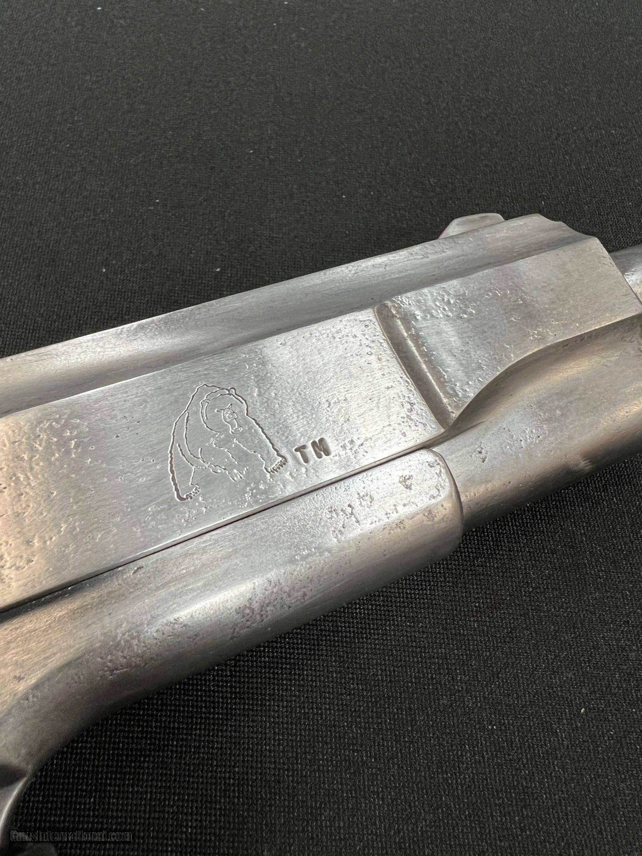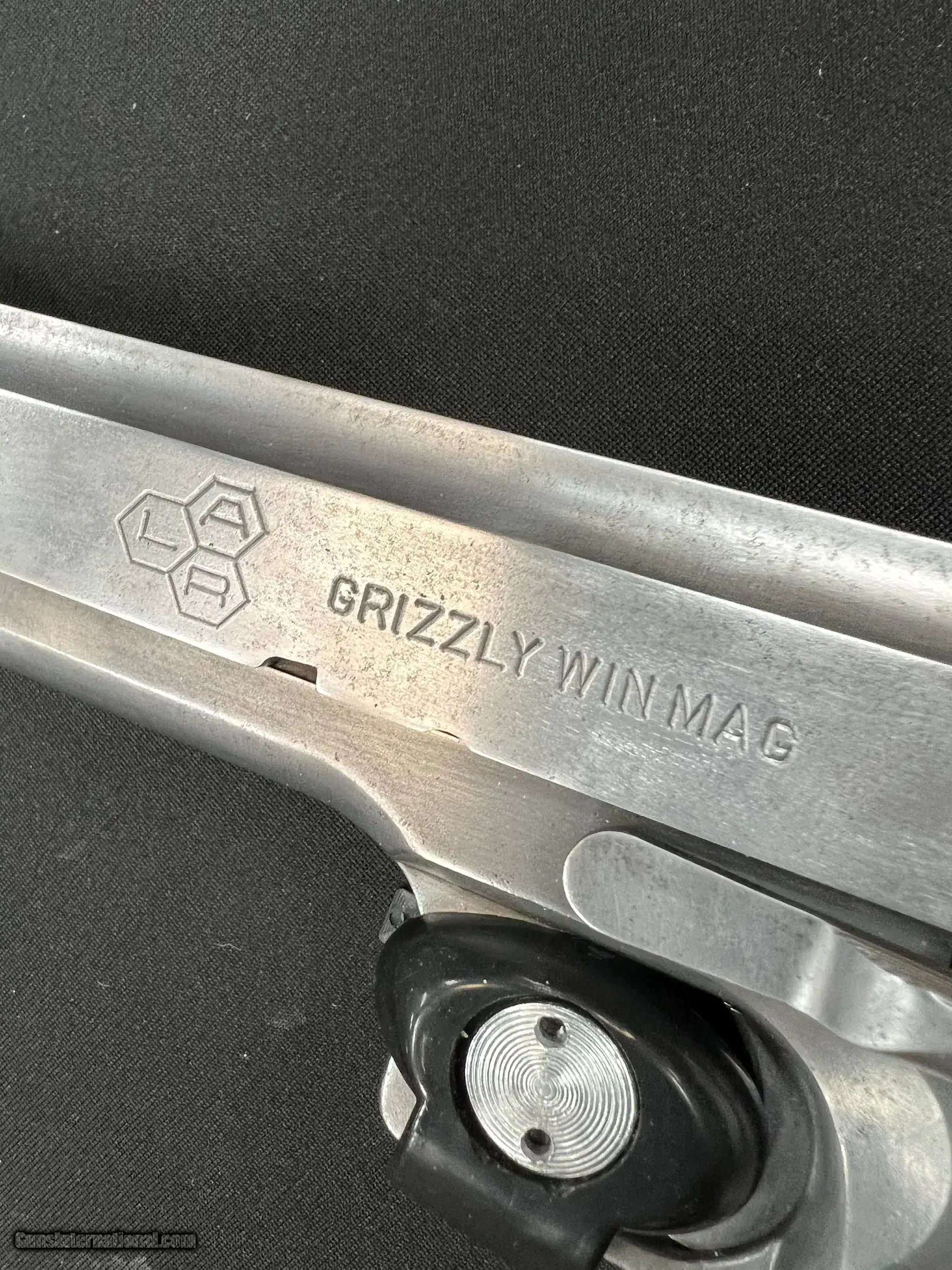 Description: Guns Listing ID: 786086 This unique handgun from LAR manufacturing is chambered in 45 Win. Mag. With one magazine and instruction booklet in original case. 4/10 condition as it has some pitting and rust. firearms are sold as-is. (A11001954) SOLD Manufacturer: Lar Manufacturing Model: Mark I Caliber Info: .45 ACP Condition: Used - Non-Certified Barrels: 6.45 BARREL Finish: MATTE STAINLESS |