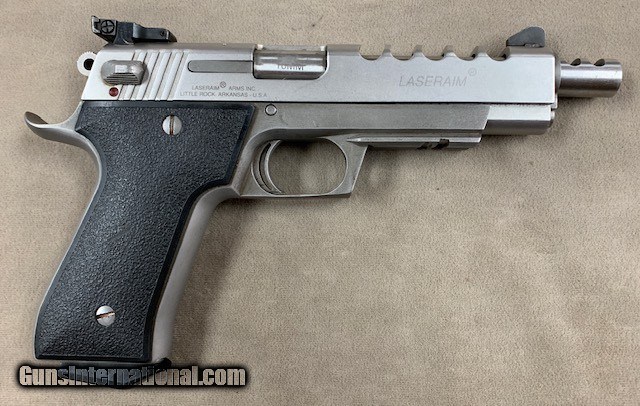 Description: An original Laseraim Pistol in 10mm. An interesting pistol - functions well in the very powerful 10mm caliber. Has additional rail cuts to the bottom of the frame for light/laser or other attachment. SOLD |