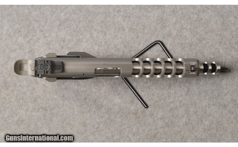 Description: This Laseraim Arms Series III semi auto pistol in .45 ACP is in very good condition. There were only thousands of these made before being sold to AMT, which makes this pistol more or less rare. The stainless steel barrel, slide and frame are very good. The stainless steel ported 6" barrel is very good with sharp clear rifling in its bore. The hard polymer textured hand grips are very good. The raised front sight and Millett target rear sight makes for quick alignment. This Laseraim pistol does not come with a box or any other accessories. .45 ACP SOLD Metal Condition: Very Good Bore Condition: Very Good Barrels: Stainless Steel Ported 6 Triggers: Stainless Steel Smooth Curved Skeletonized Stock Dimensions: LOP 3" Height 6 1/2" Length 10 Weight: 44 oz. Sights: Front Raised Ramp with Millet Rear Adjustable Target Item Location: West Chester, OH |
