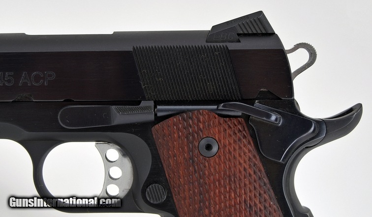 Description: Les Baer Concept VII Commanche .45 ACP caliber pistol. 4” barrel, night sights, ambidextrous safety and blued finish in excellent condition with box.