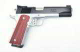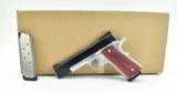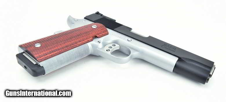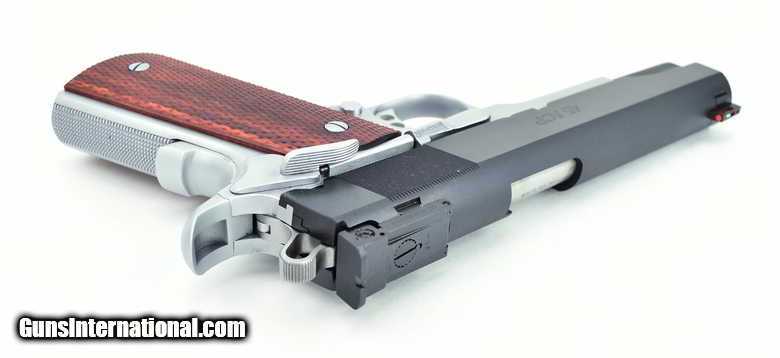Les Baer Custom 1911 Boss .45 ACP caliber pistol. 5” boss model with chrome frame and blue slide and target sights. New