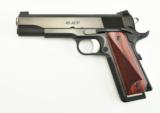 Les Baer Custom .45 ACP caliber pistol. Ultimate tactical carry model with 5” barrel, blued finish, night sights, thin rosewood grips, box and extra magazine in excellent condition.