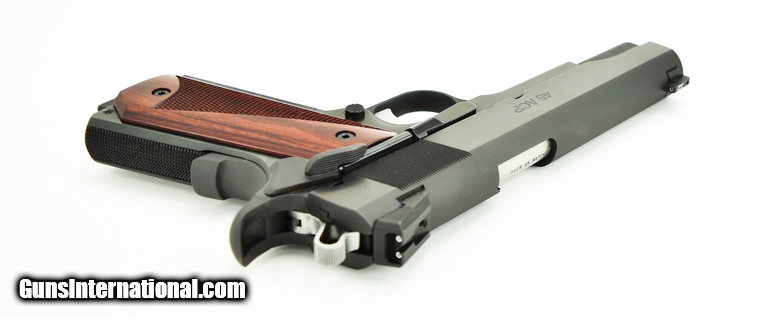 Description: Les Baer Custom .45 ACP caliber pistol. Ultimate tactical carry model with 5” barrel, blued finish, night sights, thin rosewood grips, box and extra magazine in excellent condition.
