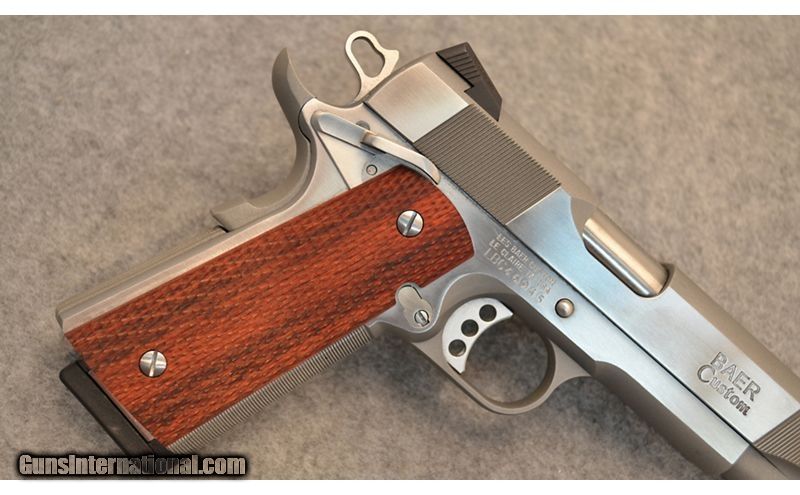 Description: This is a beautifully made Les Baer 1911 Baer Custom. It comes with original box and the sign off sheet of the Les Baer employees that built this pistol. .45 ACP SOLD Metal Condition: Excellent Wood Condition: Excellent Rosewood Grips Bore Condition: Excellent Barrels: 5 Weight: 3 lbs Sights: Open Item Location: Rogers, AR |