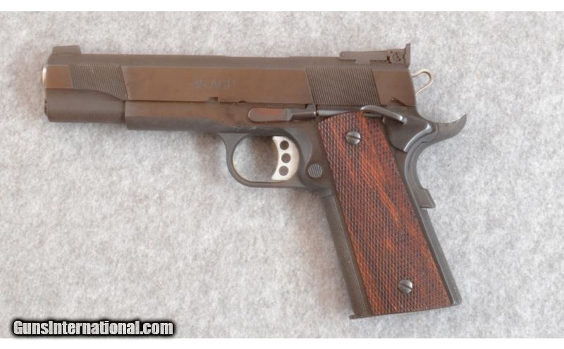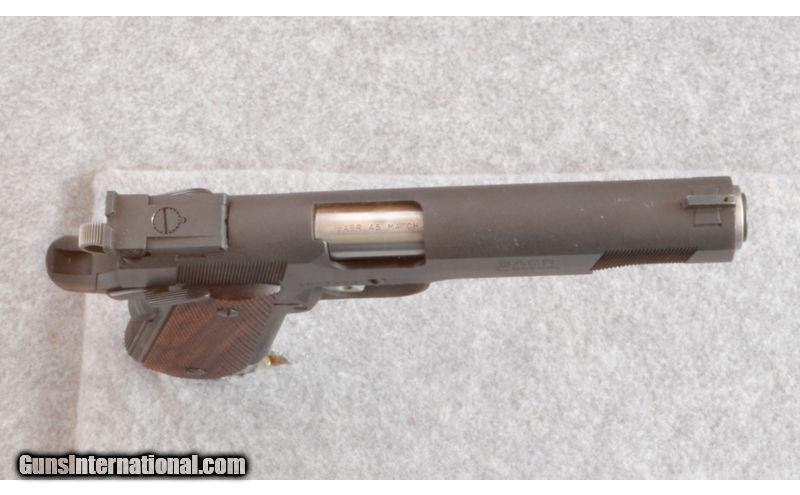Description: Custom made firearm with blued metal and one mag. SOLD Caliber Info: .45 Auto. Metal Condition: Excellent. Wood Condition: Excellent. Bore Condition: Clear and clean. Barrels: 5 inches. Triggers: Custom. Stock: Wood checked grips. Weight: 2 lbs. 6 oz. Sights: Notch rear and blade front. Extras: 1 mag. Item Location: Lone Tree, CO |