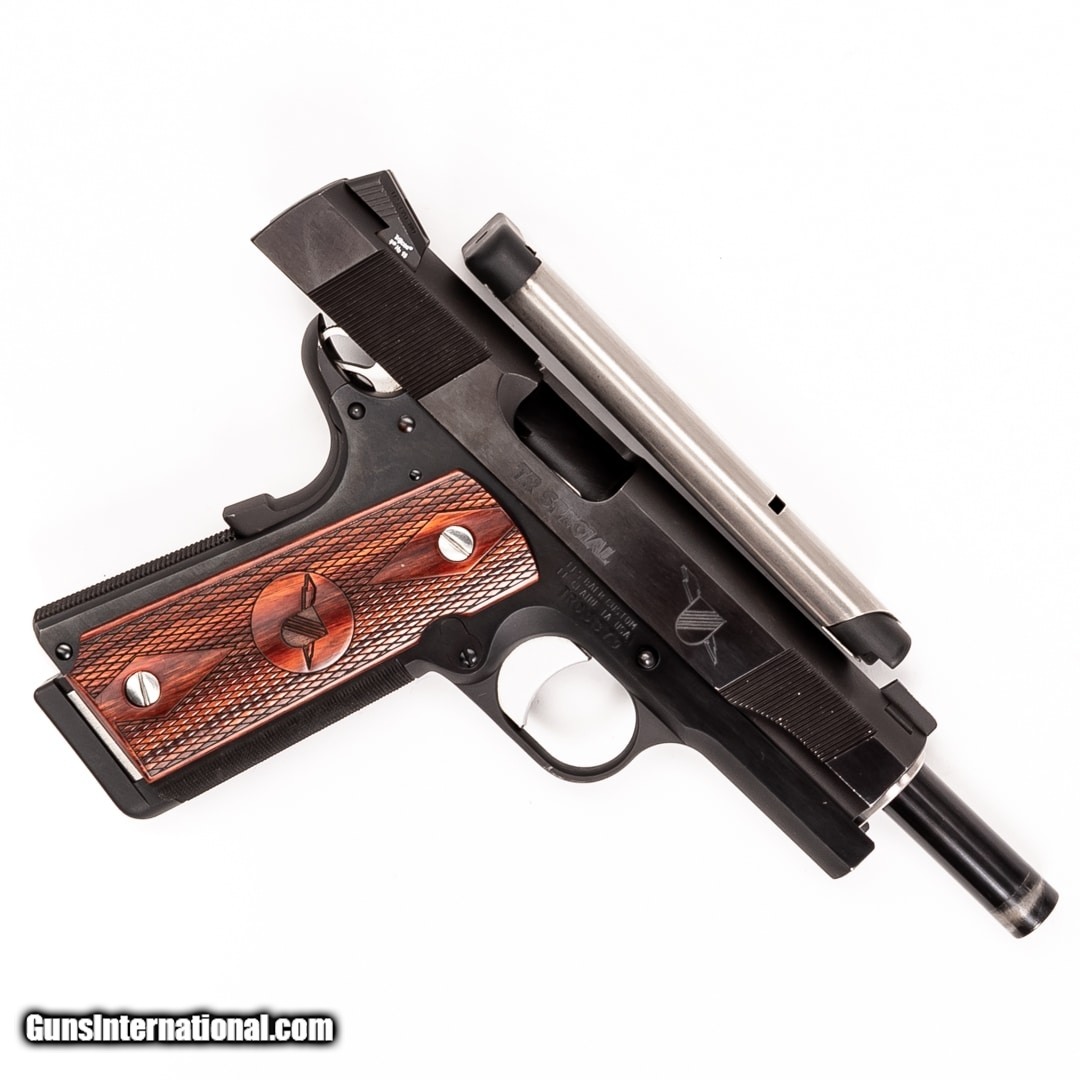 Description: Guns Listing ID: 343879 The Les Baer Custom TR Special is a meticulously crafted 1911 designed for performance. Les Baer is often considered the \"King of Custom 1911‚‚s\" and has been doing it for decades. There is a light takedown mark and minor surface marks on the slide from use. It has Trijicon night sights and comes with 2-8 round magazines SOLD Manufacturer: LES BAER Model: BAER CUSTOM TR SPECIAL Caliber Info: .45 ACP Condition: Used - Certified Barrels: 5 BARREL Finish: BLACK |