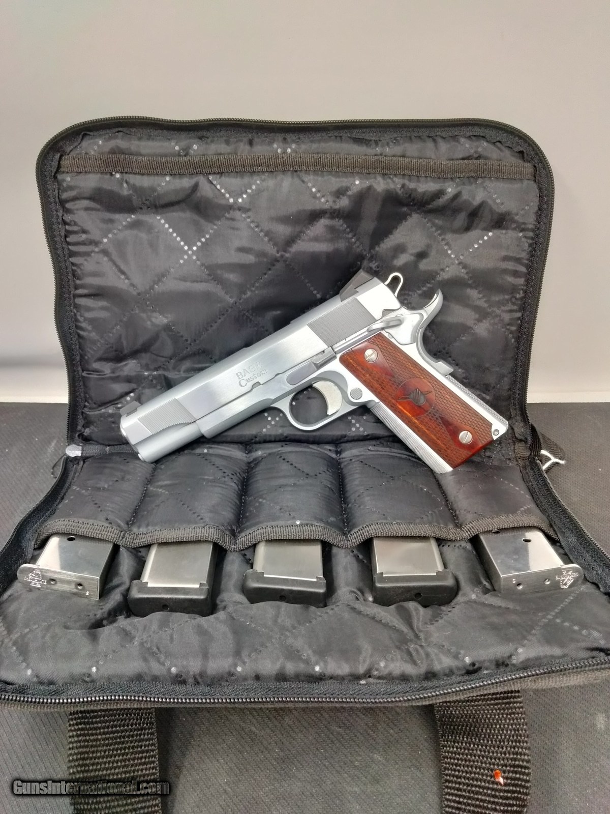 Description: Guns Listing ID: 582397 BEAUTIFUL RARE LES BAER TR SPECIAL WITH 5 MAGAZINES INCLUDED IN CASE! SOLD Manufacturer: LES BAER Model: BAER CUSTOM TR SPECIAL Caliber Info: 45 ACP Condition: Used - Non-Certified Barrels: 5 BARREL Finish: STAINLESS |