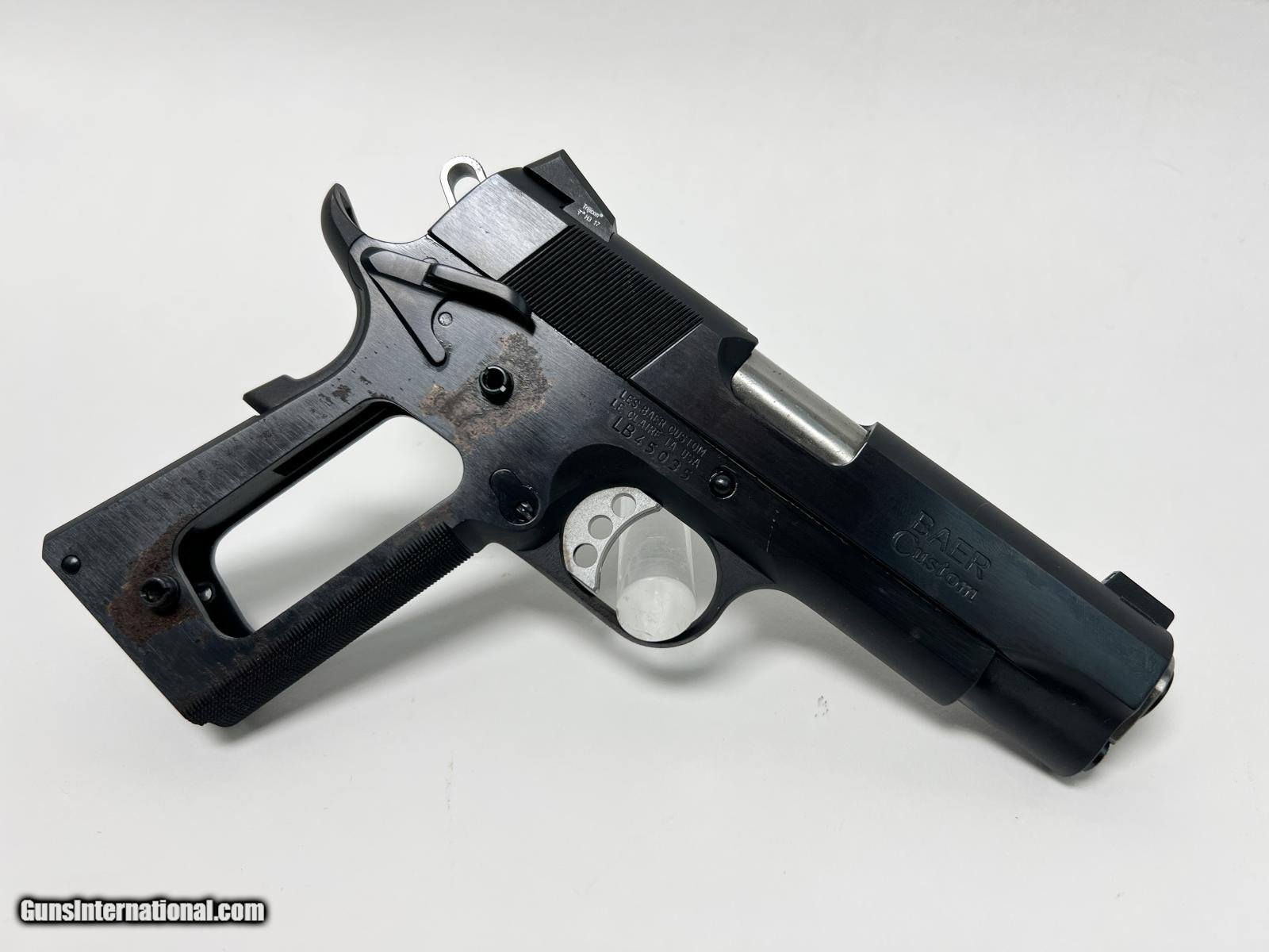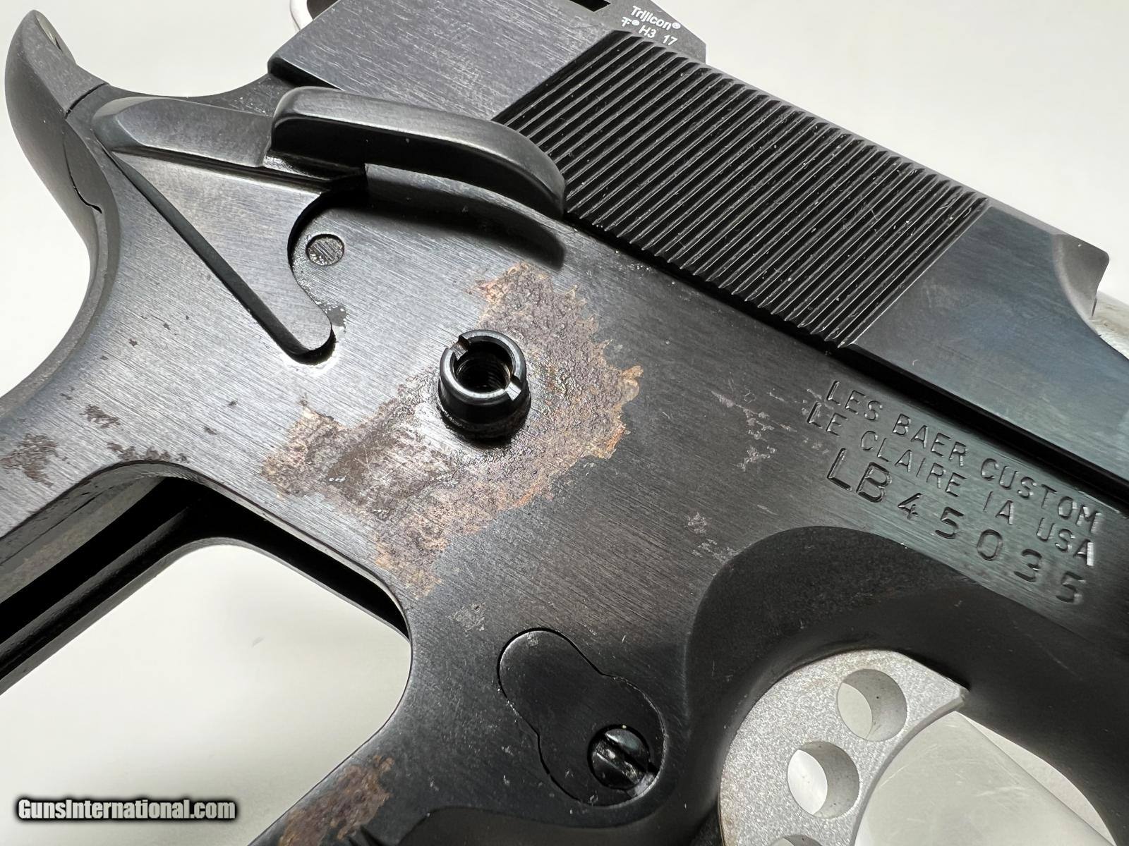 Description: Guns Listing ID: 673140 Les Baer Custom Carry Comanche 45ACP, 4.25\" Barrel, Blued Finish, G10 Grips, 2 Magazines, Original Box Observations: Preowned Unfired Some rust under grip panels, front strap checkering and slide(Pictured) A few scratches Includes: Original Box 2 8 Round Magazines SOLD Manufacturer: LES BAER Model: BAER CUSTOM Caliber Info: 45ACP Condition: Used - Non-Certified Barrels: 4.25 BARREL |