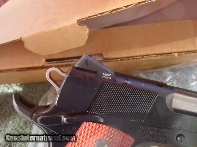 Description: SOLD Les Baer Concept VII, Commanche,4 1/4" Barrel.brand new in the box with all the papers and warranty-taken out for pics and returned. The Concept VII comes with deluxe fixed combat rear/front-night sights,Baer extended ambi safty,beveled mag well,checkered slide stop,premium checkered wood grips 30 LPI Checkered Front Strap List price $2300 plus shipping (should be around $45 with insurance USPS Priority Mail) From the Les Baer site: Baer's line of Concept pistols pushes the envelope for the perfect combination of ahead-of-the-art design, true custom craftsmanship, unparalleled performance, and the best value in the firearms industry. All Concept© pistols come with a crisp 4 lb. pull and all are guaranteed to deliver 3" groups at 50 yards. The Baer Concept is a full size custom 1911 with features that include: Baer steel NM frame, NM slide and NM barrel with Baer stainless bushing • Slide fitted to frame • Double serrated slide • LBC deluxe fixed combat sight • Baer dovetail front sight • Baer beavertail grip safety w/pad • checkered slide stop • Tuned Baer extractor • Baer extended ejector • Baer deluxe hammer and sear • Lowered and flared ejection port • Polished feed ramp and throated barrel • Baer flat serrated mainspring housing • Beveled magazine well • Baer extended ambi safety • Baer fitted speed trigger with action job • Baer Premium Checkered grips • Blued finish • Tuned for total reliability • (1) 8-round premium magazine This gun is IN STOCK and ready to ship as are all the guns I have listed-unless noted. Happy to send along more pics,answer questions over phone or email.Please email your phone number so I can call back if I miss the call,thanks have other Les Baer's in stock as well. Be sure to look at my other offerings for more Colt Saa's,Colts, Rugers, Brownings,Uberti's by both Taylor and Cimarron,Rizinni and Ferlib,Merkel ,Parker shotguns and other fine guns.Inventory always changing be sure to check with us for any needs. Local New Hampshire Buyer can view/purchase gun in person-after 4473/ NICS check, at Investment Arms business premise in New Hampshire Country Store, Rt 16 Chocorua NH.Please email/call (603.323.8200 ) first to be sure its not sold. We also Buy and Consign Guns Payment by bank check,UPS money order-personal check held until clear 10 days.Buyer must provide dealers signed 01 FFL-email or hard copy,I will include a copy of my FFL with shipment. 3 Day non firing/non turn inspection period (gun must be in same condition if returned) on used guns only-not new guns sorry they are under factory warranty,buyer pays shipping and insurance both ways if returned. SAFETY NOTICE: Buyer is solely responsible for determining that a used gun is safe to shoot.The firearms offered has been given a visual inspection for collection purpose only. It is a requirement that any used firearm be inspected by a qualified gunsmith before firing. By purchasing the firearm, the buyer agrees to hold seller harmless against damages, injury, or death caused by defective merchandise SOLD |