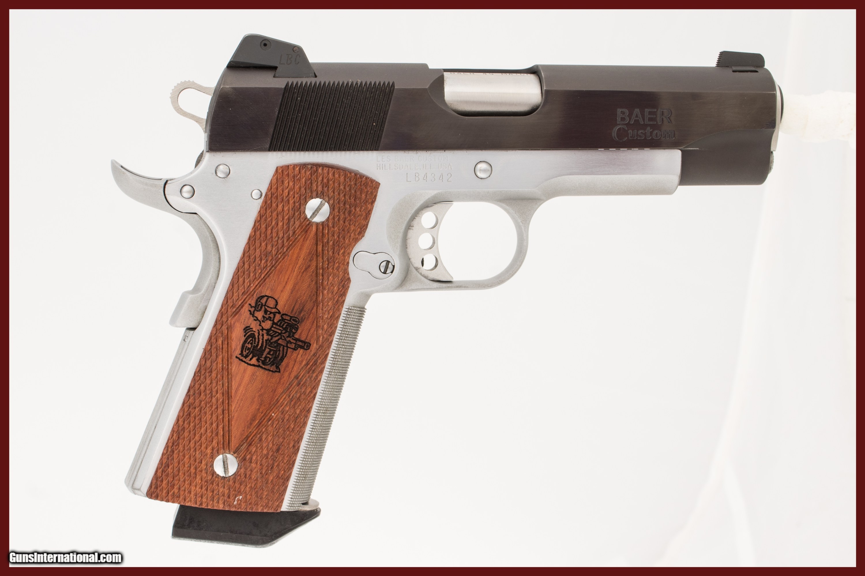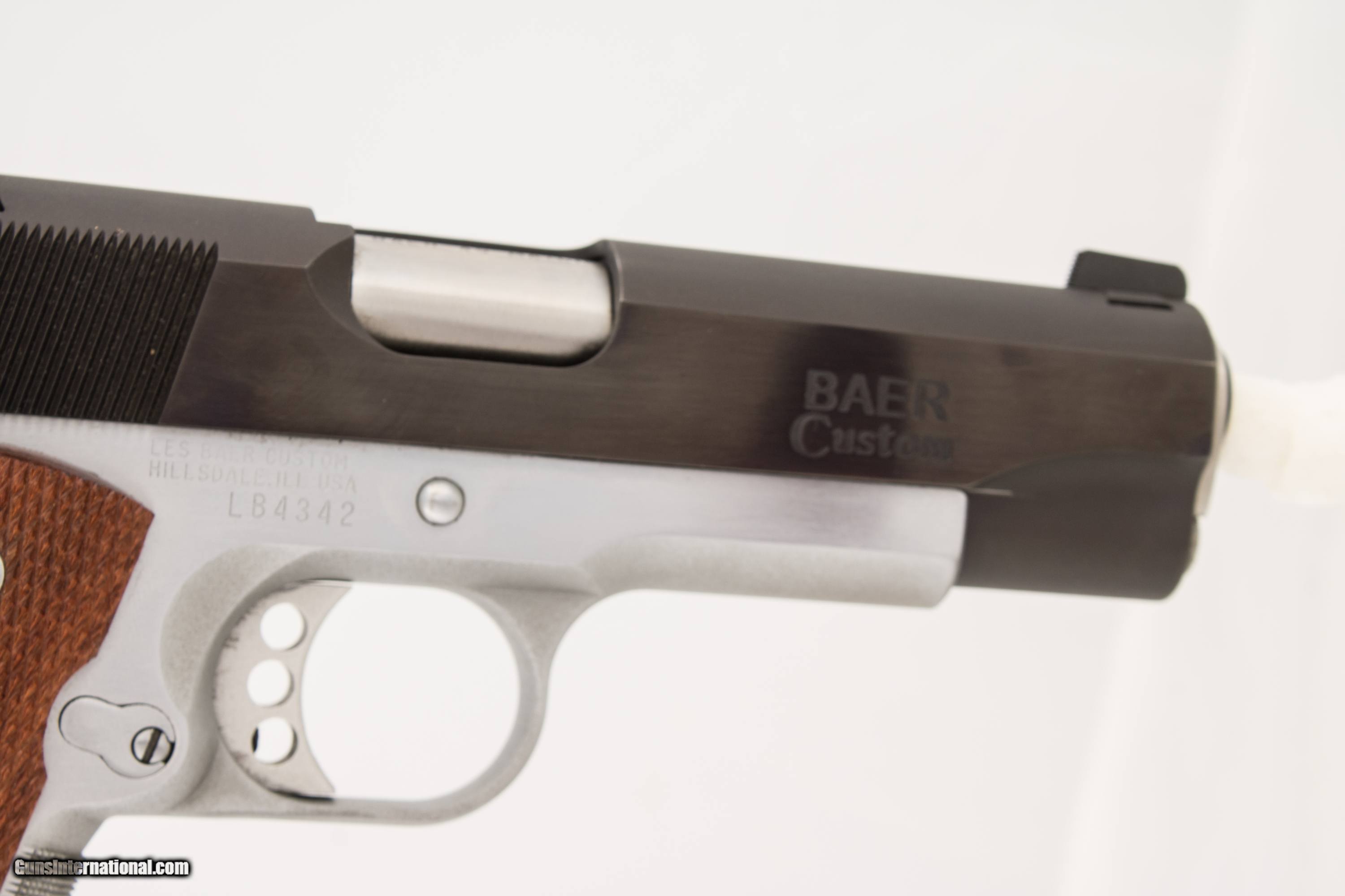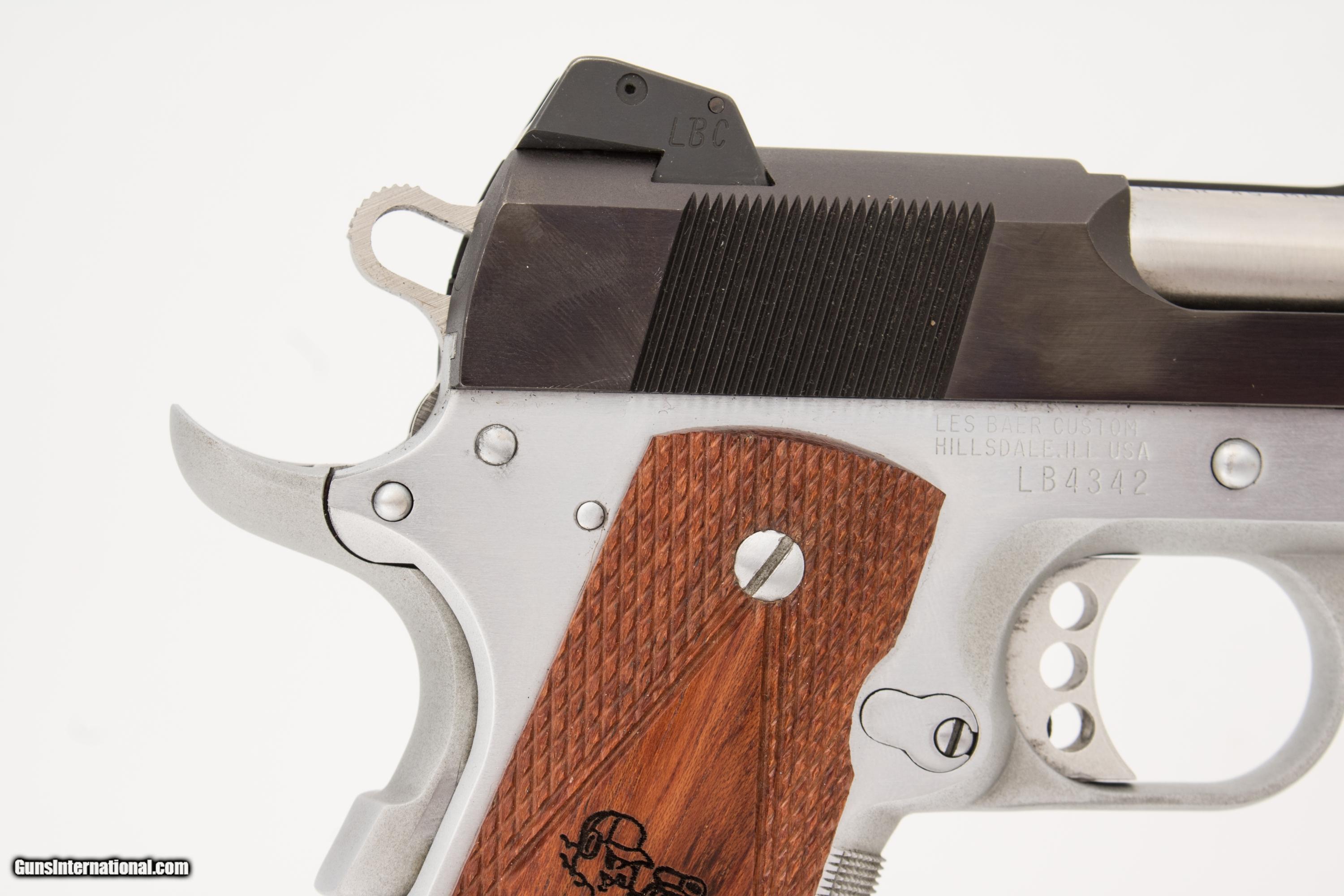 Les Baer Custom 1911 chambered in 45 ACP with a 4 1/4 inch barrel and bright & shiny bore. This gun is in excellent condition and is covered by Dury's Lifetime Warranty.