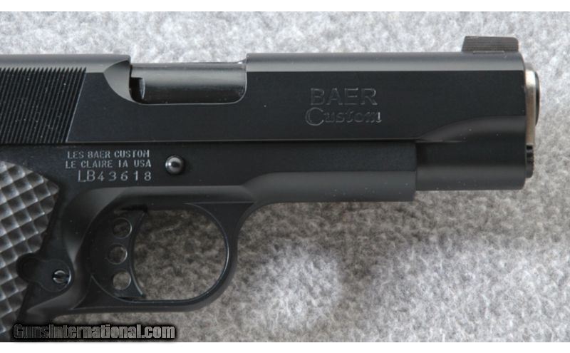 Description: The Les Baer 1911 Black Baer is a compact little powerhouse based on Les' popular Commanche pistol and chambered in high velocity, hard hitting 9mm Parabellum cartridge. As with all Les Baer pistols, the Black Baer is built with the same attention to detail and precision engineering that have made Les Baer 1911s a legend in the firearms industry. SOLD Caliber Info: 9mm Para. Metal Condition: Excellent with a few light scuff marks on the finish Bore Condition: Excellent, bright and sharp Barrels: 4 1/4 inch National Match supported barrel with Baer stainless bushing Triggers: Baer speed trigger Weight: 40 oz. Sights: Baer deluxe fixed rear combat night sight and Baer dovetail front night sight Extras: Box, paperwork and bushing wrench Item Location: Lehi, UT |
