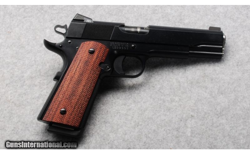 Description: SOLD Caliber Info: .45 Metal Condition: Very good with light handling wear, on the left side of the slide there is a small nick in the bluing (see picture) Wood Condition: Excellent Bore Condition: Bright with good rifling Barrels: 5 Stock: Checkered grips Weight: 2.75lb Sights: Trijicon night sights Item Location: East Hartford, CT |