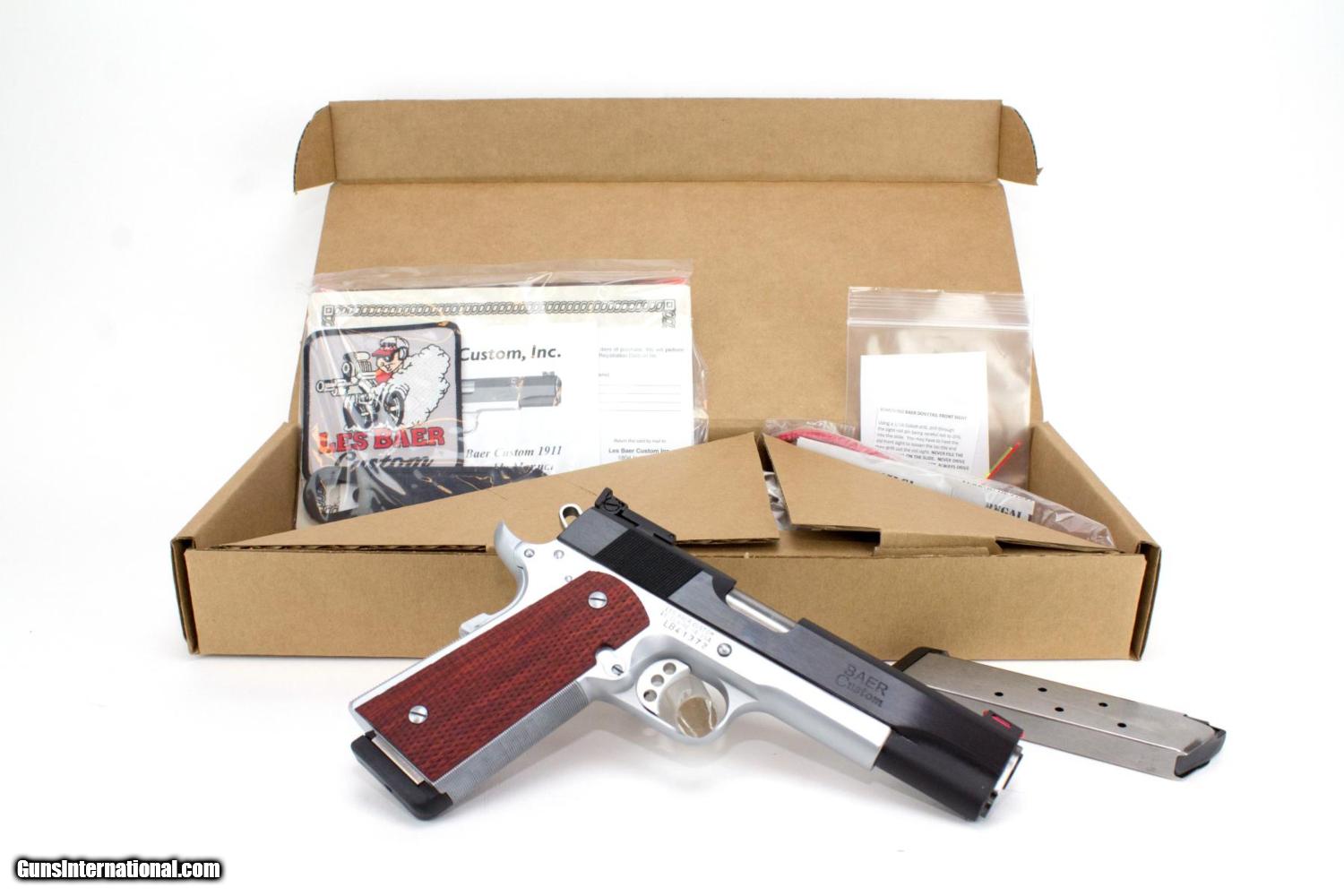 Description: BRAND NEW - LES BAER 1911 BOSS 429 45 ACP 5" BLUE / HARD CHROME ADJUSTABLE SIGHTS 8 ROUND NOTE: Pictures in the listing are stock photos, the actual pistol for sale is still in the factory sealed box. A fitting tribute to the high performance 1970s muscle car that inspired it. Les Baer is still the king of custom built 1911 pistols in addition to being a well known aficionado of high performance American muscle cars. That’s why Les named his newest 1911 model after the Boss 429 Mustangs he admires above all other cars. The newest model .45 is based on the popular Premier II, but it has enough thoughtful extra touches to really make it the new Boss of custom .45s. As with our other pistols, the new Boss is guaranteed to shoot 3” groups at 50 yards. Caliber: .45 ACP Special features include: Rear cocking serrations on the slide • Baer fiber optic front sight (red) • Flat mainspring housing, checkered at 20 lpi • Extended combat safety • Special tactical package • Chromed complete lower • Blued slide • (2) 8-round premium magazines TRADES Welcome Shipping just $35 to the lower 48, all prices listed reflect a 3% cash discount which is not available when paying with credit card. We do not accept personal checks and no longer offer lay-a-way simply because we want to process your order and ship immediately. We do ship to CA if item is on the DOJ approved list for an additional $10 to cover DOJ “import” paperwork. Check out my other listings for more great deals! SOLD Manufacturer: Les Baer Custom Model: Boss 429 Caliber Info: .45 acp Condition: BRAND NEW |
