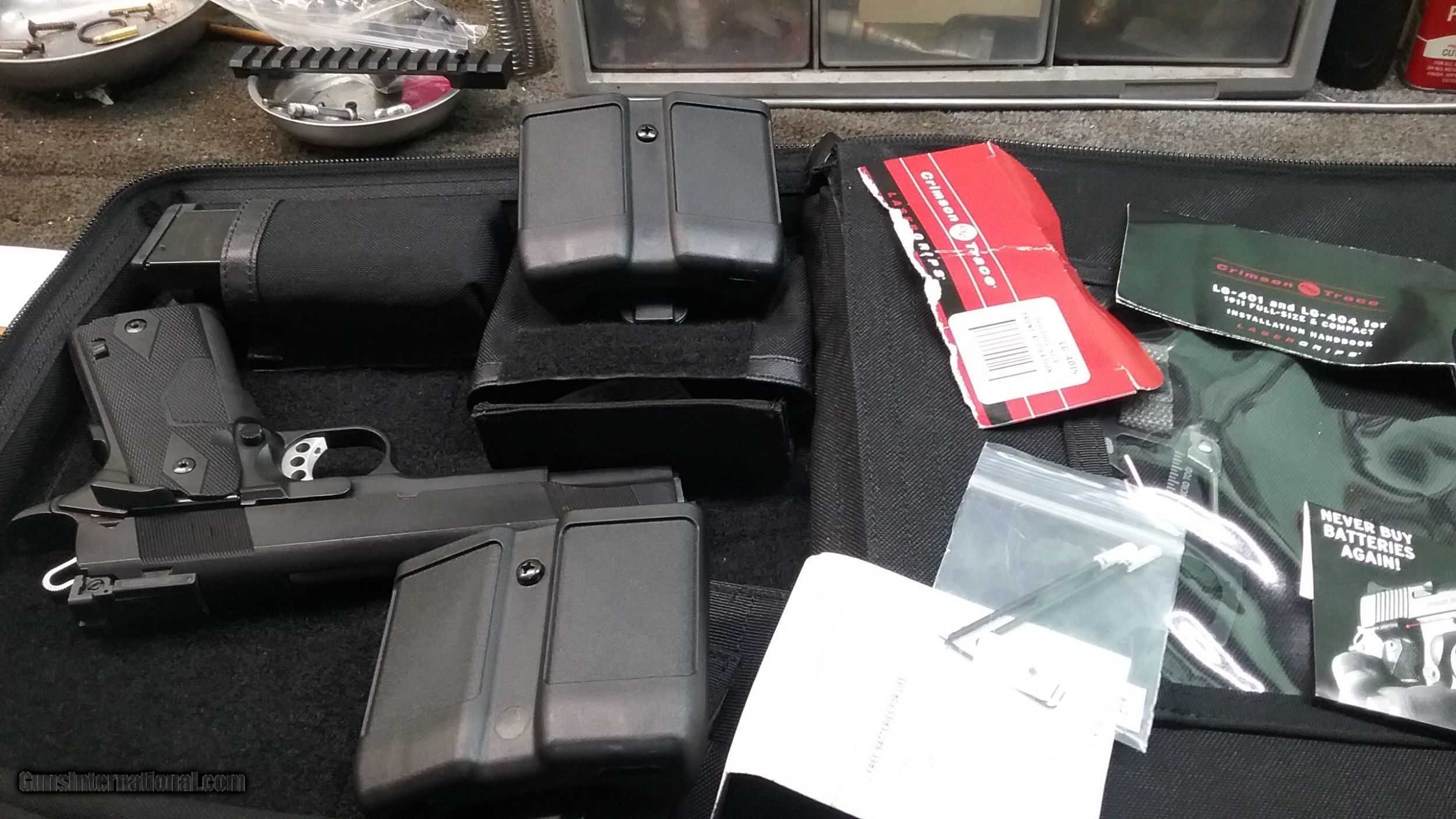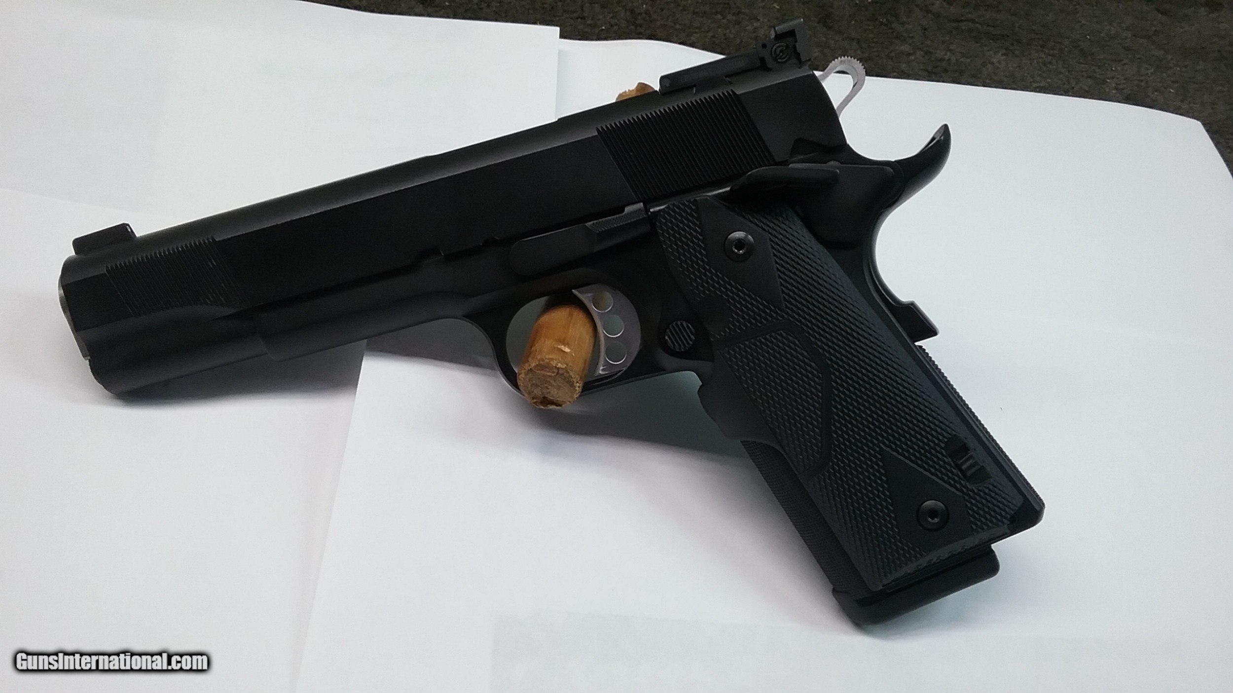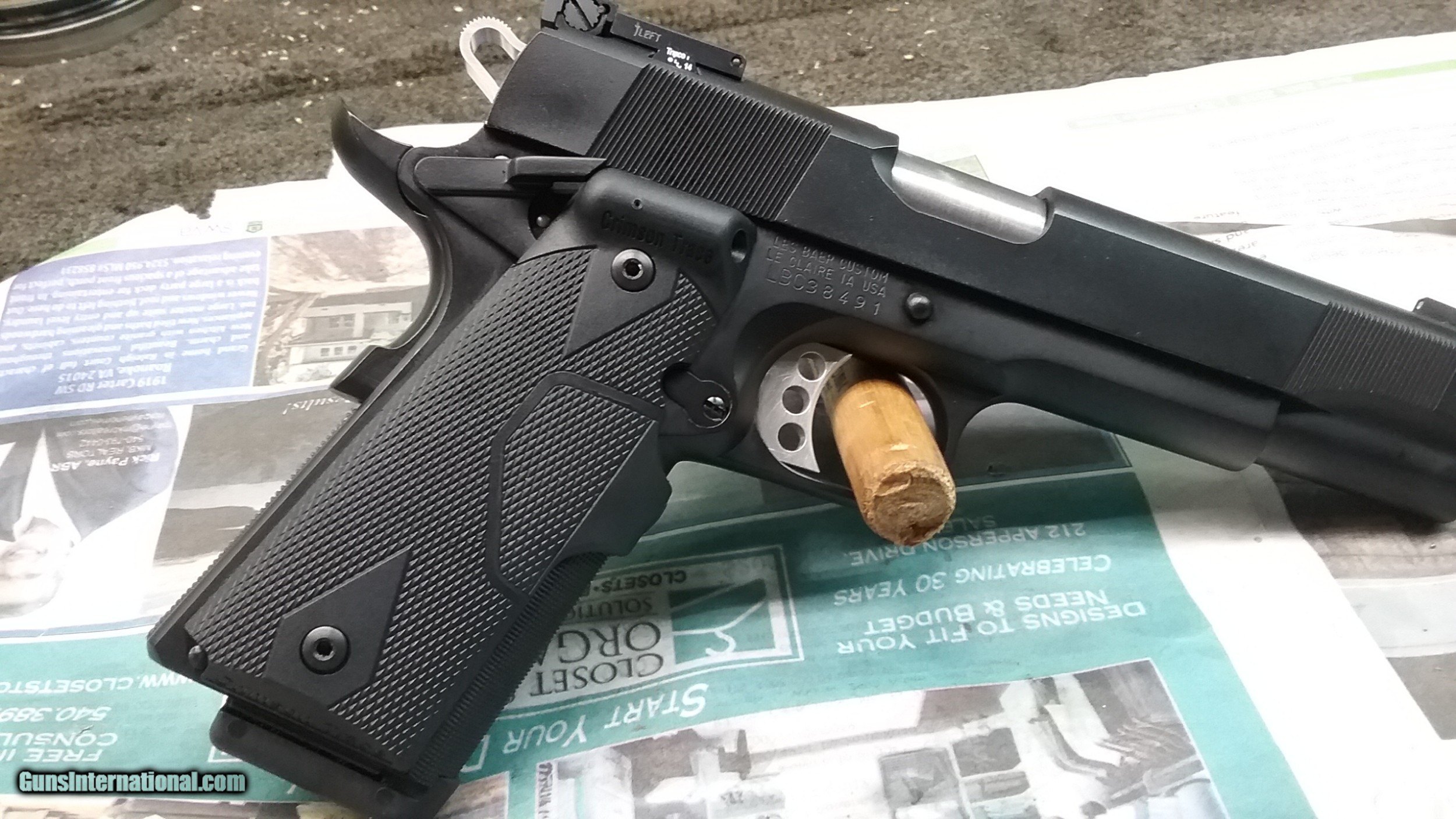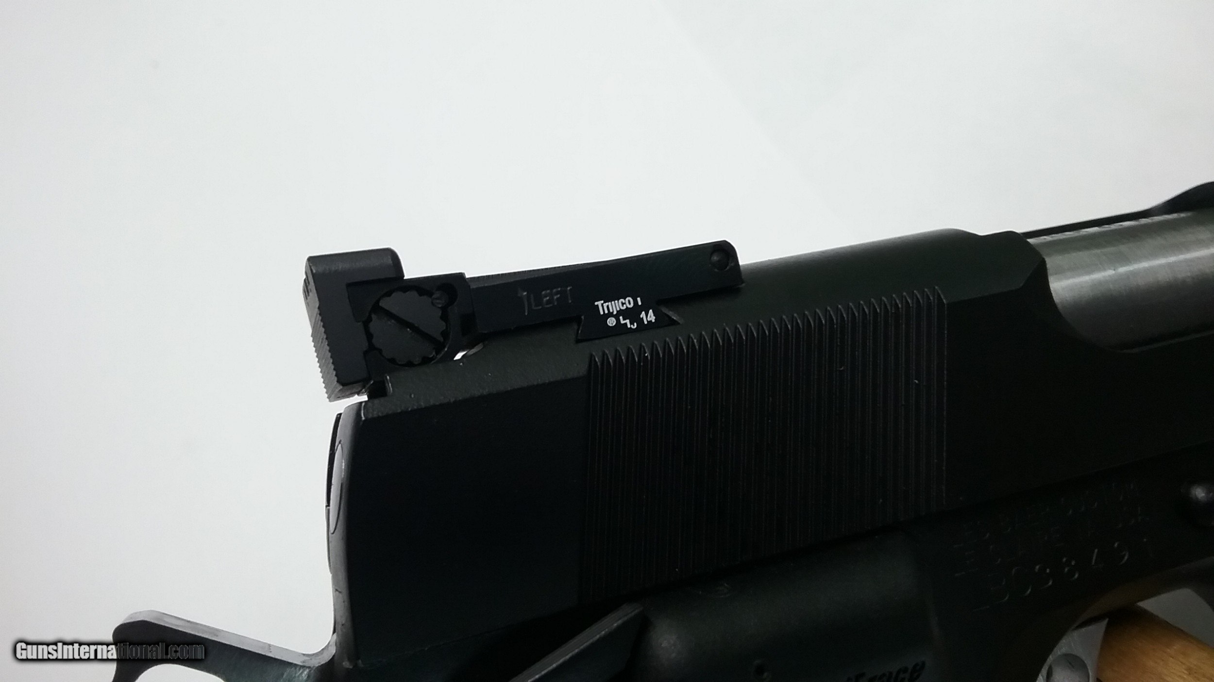 Description: This Les Baer custom really is a find! This 4 year old has been shot 7 times, I mean 7 rounds! The first two when the Crimson trace grips went on, the next 5 last weekend when I proofed it out. Gunsmiths perogative, just HAD to shoot it! A genuine pleasure it was as well. The trigger broke cleanly at about 4.5 pounds, the crimson trace grips keep you right on target along with the fully adjustable trijicon night sights. Four magazines, 2 mag holders, the paperwork and the carry case round out this great once in a lifetime deal on an outstanding firearm. You will not be disappointed at the fit and finish on this 1911. I rate this gun at 100%, and I never do that except for new guns. Get this one today while it lasts! I would take any reasonable offer to the owner. Fedex shipping is 45.00 SOLD Manufacturer: Les Baer Model: Baer 45 match Serial Number: LBC38491 Caliber Info: .45 Condition: excellent Metal Condition: perfect Action: single |