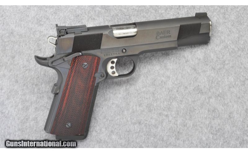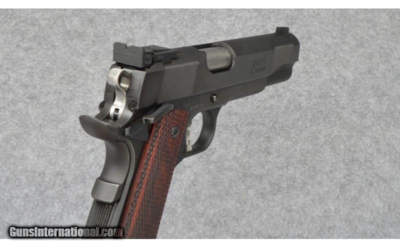 Description: Les Baer Custom Premier II chambered in 45 ACP. Full sized 1911, Baer NM steel components fitted to precise standards. Lowered and flared ejection port ,Tuned and polished extractor , Baer extended ejector. Baer beavertail grip safety with pad, Flat serrated mainspring housing, Beveled mag well , Polished feed ramp and throated barrel, Baer extended ambi safety, High checkered front strap 30 lpi • Excellent with factory box, manuals and extra mag. 05568790 SOLD Caliber Info: 45 ACP Metal Condition: Excellent Wood Condition: Excellent Bore Condition: Bright and Sharp Barrels: 5 Inch Match Grade w/ Stainless Bushing Triggers: Adjustable Stock: Checkered Wood Sights: Adjustable Rear Sight, Dovetailed Front Item Location: Buda, TX |