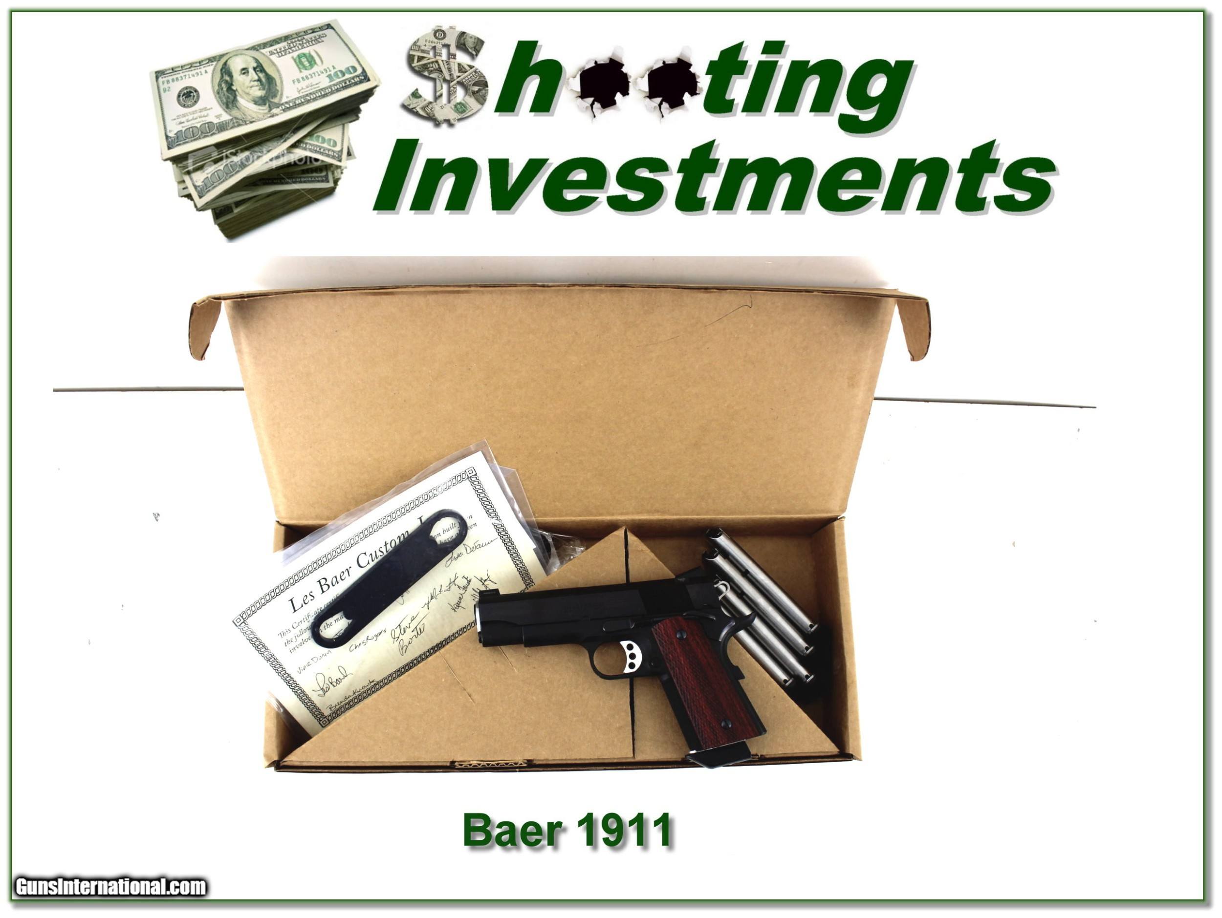 Description: Shooters and collectors, this is a new and unfired Les Baer Custom Stinger in the harder to find 38 Super. It comes with 5 magazines! It has a 4.25in barrel with fixed titanium sights. Extra checkering on the front of the trigger guard and extended thumb safety for right-handed shooters. It comes as seen in original box with papers. I am selling this one on consignment and as such lay-a-way can’t be used. It does of course have the standard 3-day inspection. Shipping and insurance is $69. Please email me with any questions or larger pictures. (Consign your quality firearms with Shooting Investments for only 12%! Let me know if you have any you would like to sell!) 21-1737 Payment: Payment is by Money Order, Cashiers Check or Personal Check. I can now also accept Credit Cards (MasterCard, Visa, Discover & American Express) with a 3% convenience fee. Shipping: The shipping charge will be listed in each description. It is $49 for most long guns. Some heavy guns, over 48in boxes or those insured for over $2000 will be higher. Shipments to Alaska and Hawaii are higher because air shipment is required. Most firearms are shipped on Tuesday and Thursday and usually in 5 days of receipt of payment. We package all shipments carefully and insure them. Optics are shipped Priority Mail and most other non-firearm shipments are shipped First Class. Returns: Our return policy is simple. If for any reason you are not pleased with your purchase, you may return your item for a full refund of purchase price. Ammunition cannot be returned. It is important to us that you are happy. Guns cannot be fired or dissembled before returning them and they must be returned in the same condition as received. Notification of a return must occur with-in 3 days of receipt at your dealer. Shipping, convenience and dealer fees are not refundable and are the responsibility of the buyer. Lay-a-way: If needed, we offer a 60 day lay-a-way option on most firearms. It is 1/3 now, 1/3 in 30 days and 1/3 in 60 days. Lay-a-way firearm sales are final and if not completed the first payment cannot be returned. Consigning your firearms with Shooting Investments: We will help you get top dollar for your firearms. While most local guns shops charge 20% or more, our fee is only 12% with a minimum of $75. At your local gun shop it might take months to sell. Selling on-line provides instant access to thousands of interested buyers. You won’t find any other on-line dealer willing to sell your firearms for only 12% or listing every gun on 3 separate s. Selling through an House typically costs the seller 15% and the buyer an addition 15% (so 30%) and you have to wait several months to sell and longer to receive funds. If properly priced, we will sell your firearms in a few weeks. Send us an email or give us a call and we’ll explain how easy it is for you to get top dollar. Trading: Trading for use is really just buying your gun to re-sell. If you have a gun you want to trade, please email a picture and we will let you know what we can give or it. You will always get more if we sell it for you on consignment. Help for California Buyers: We are happy to ship to California. It is the buyer’s responsibility to make sure any item you buy is legal in your state. We are also happy to help with your purchase of a firearm from someone other than us. If you see a gun you would like to buy but the seller can’t or won’t ship to California they can ship to use and we’ll then ship it to your California dealer. The cost for this service is only $30 + shipping. Let us know if we can help! SOLD |