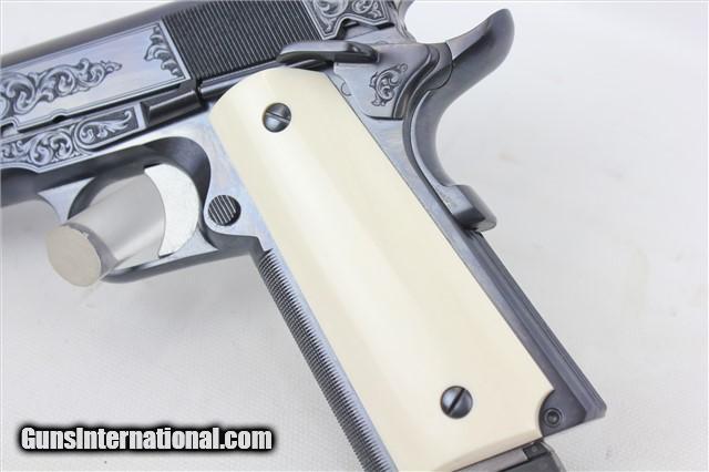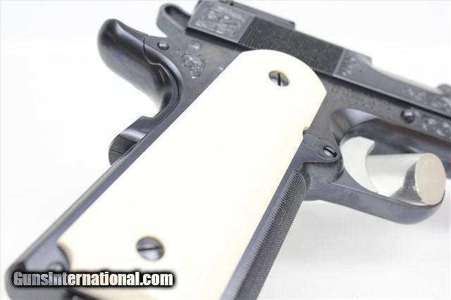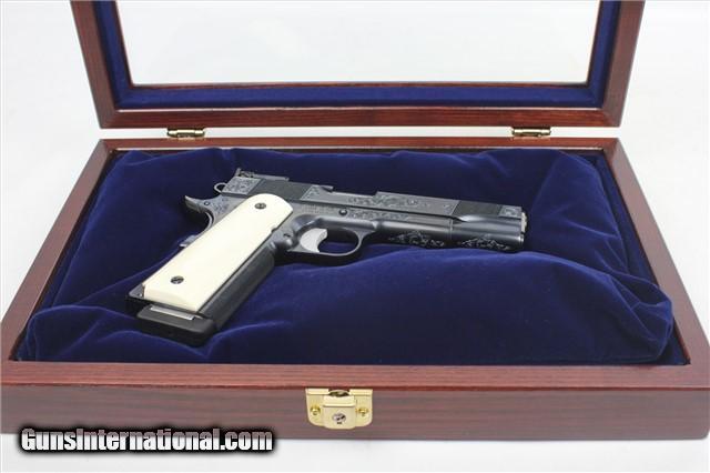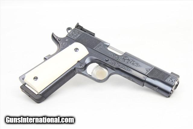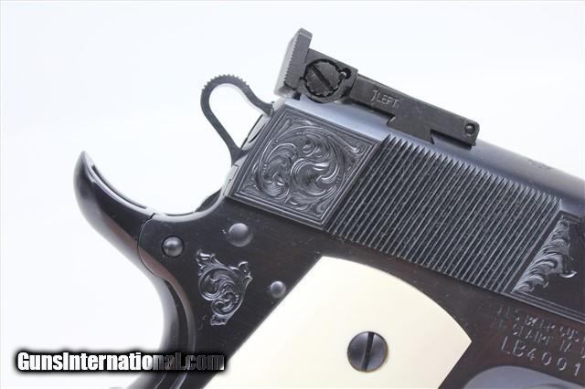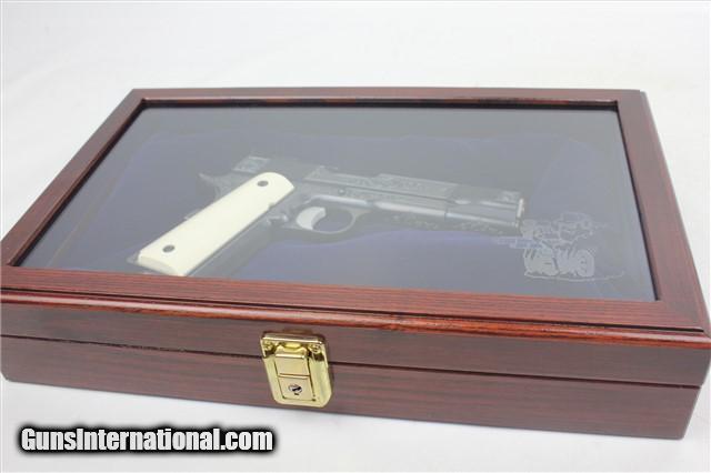 Description: In honor of Ltheir first twenty-five years in business, Les Baer Custom is proud to announce this very special offering. "Our 25th Anniversary Model 1911 is a testament to our standing as the world leader in the production of custom 1911 pistols that are as close to perfect as anyone has a right to expect. Like our special Presentation Grade Model on the previous pages, this new commemorative model starts life as a fully equipped and fully functional Baer Premier II pistol, the flagship of our 1911 product line, and still the standard against which all other 1911 pistols are judged." Then, to make it extra special and extra beautiful, we have enhanced it with these unique features that help guarantee its strong visual appeal and its continued collectibility for years to come: Exquisitely crafted hand engraving on both sides of the slide and frame; Les Baer’s actual signature and the legend “25th Anniversary” have been engraved, then inlaid with white gold on the top of the slide; All the flat metal surfaces have been hand prepared with ultra-fine 1200-grit material, then the entire pistol has been finished with a deep, rich Charcoal Bluing; Each pistol comes with real ivory grips, an absolutely stunning contrast to the deep blue finish; A special presentation box is included. #14 and #15 of 25 are available. Our Contact Info: Phone: 1-888-365-7030 Email: covecreekoutfittersgmail Mailing Address: Cove Creek Outfitters 111 East Pitt ST Bedford, PA 15522 SOLD |