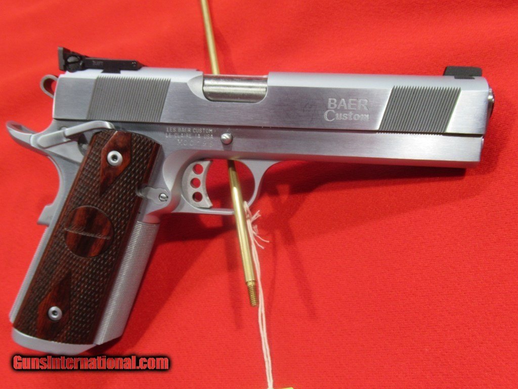 Description: Les Baer Millenium 45acp 5" Stainless (USED)-- Mint condition and unfired according to the original owner: full stainless slide and frame, full length dust cover, front and rear cocking serrations, scheckered mainspring housing and front strap, extended ambidextrous safety, adjustable rear sight, two piece extended mag well, checkered slide release. Comes with the factory box and paper work. SOLD |