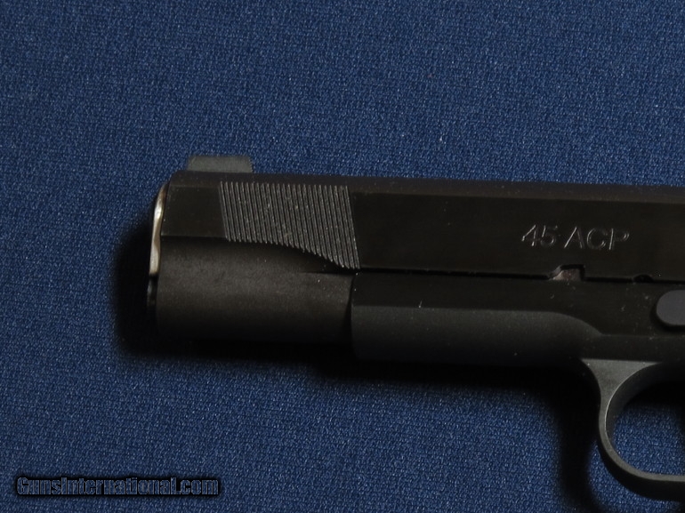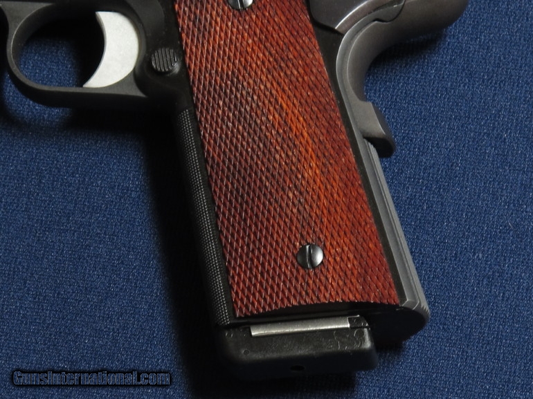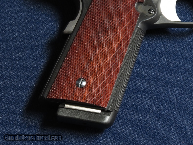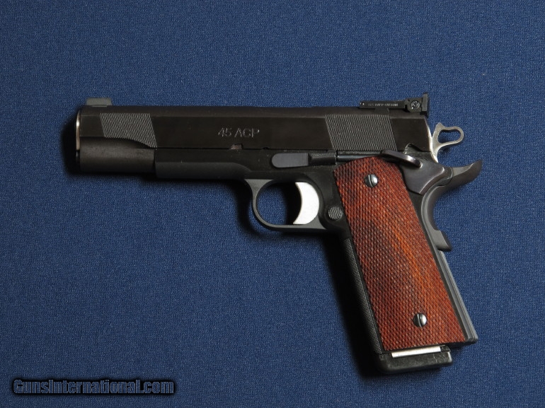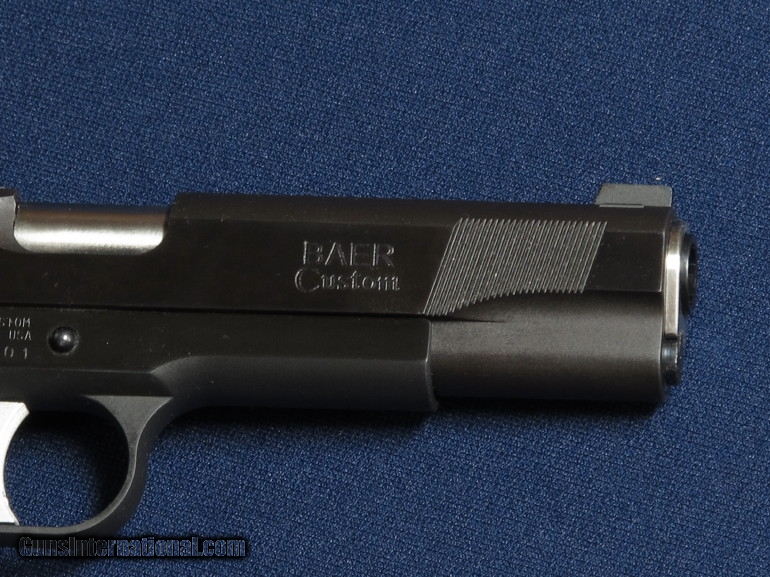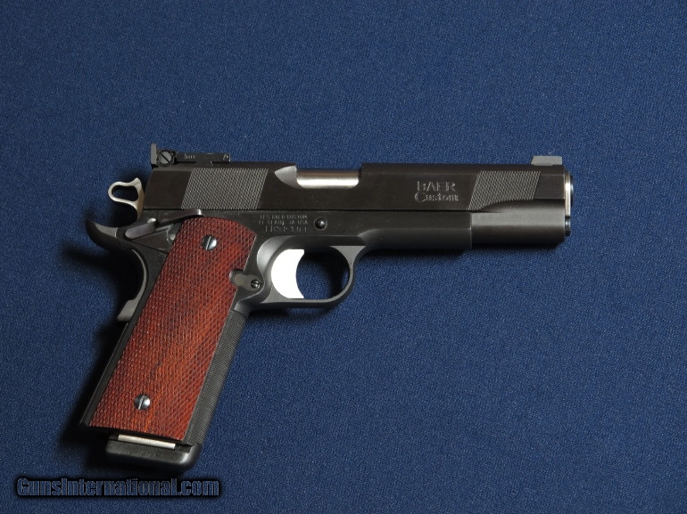 Description: Les Baer Premier II 45ACP. 5in barrel. Target sights. 99% condition. Specs. Baer NM steel frame, NM slide and NM barrel with stainless bushing • Slide fitted to frame • Double serrated slide • Low mount LCB adjustable sight with hidden rear leaf • Baer dovetail front sight • Lowered and flared ejection port • Tuned and polished extractor • Baer extended ejector • Baer checkered slide stop• Baer speed trigger with crisp 4 lb pull • Baer deluxe Commander hammer and sear • Baer beavertail grip safety with pad • Flat serrated mainspring housing • Beveled mag well • Polished feed ramp and throated barrel • Baer extended ambi safety • High checkered front strap. Baer Premium Checkered Cocobola grips • Blued finish • SOLD |