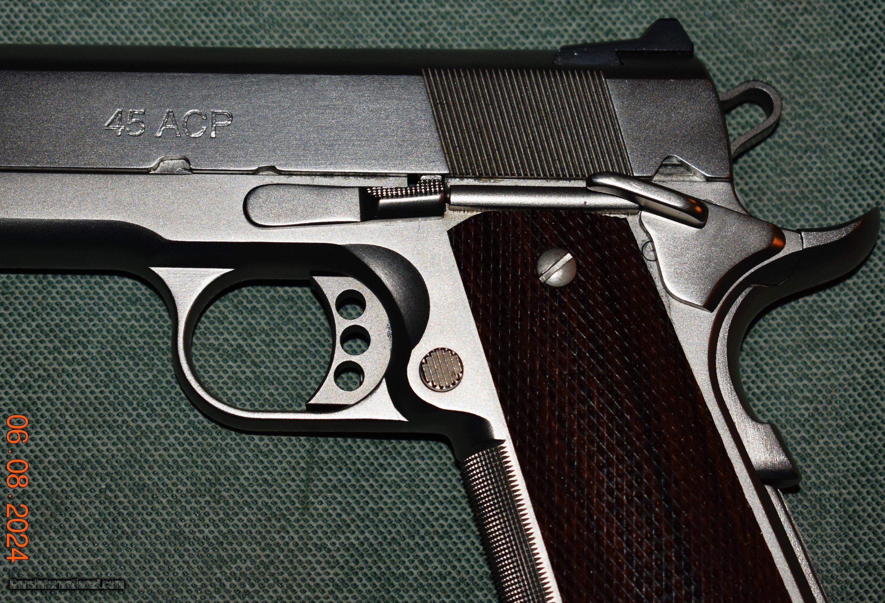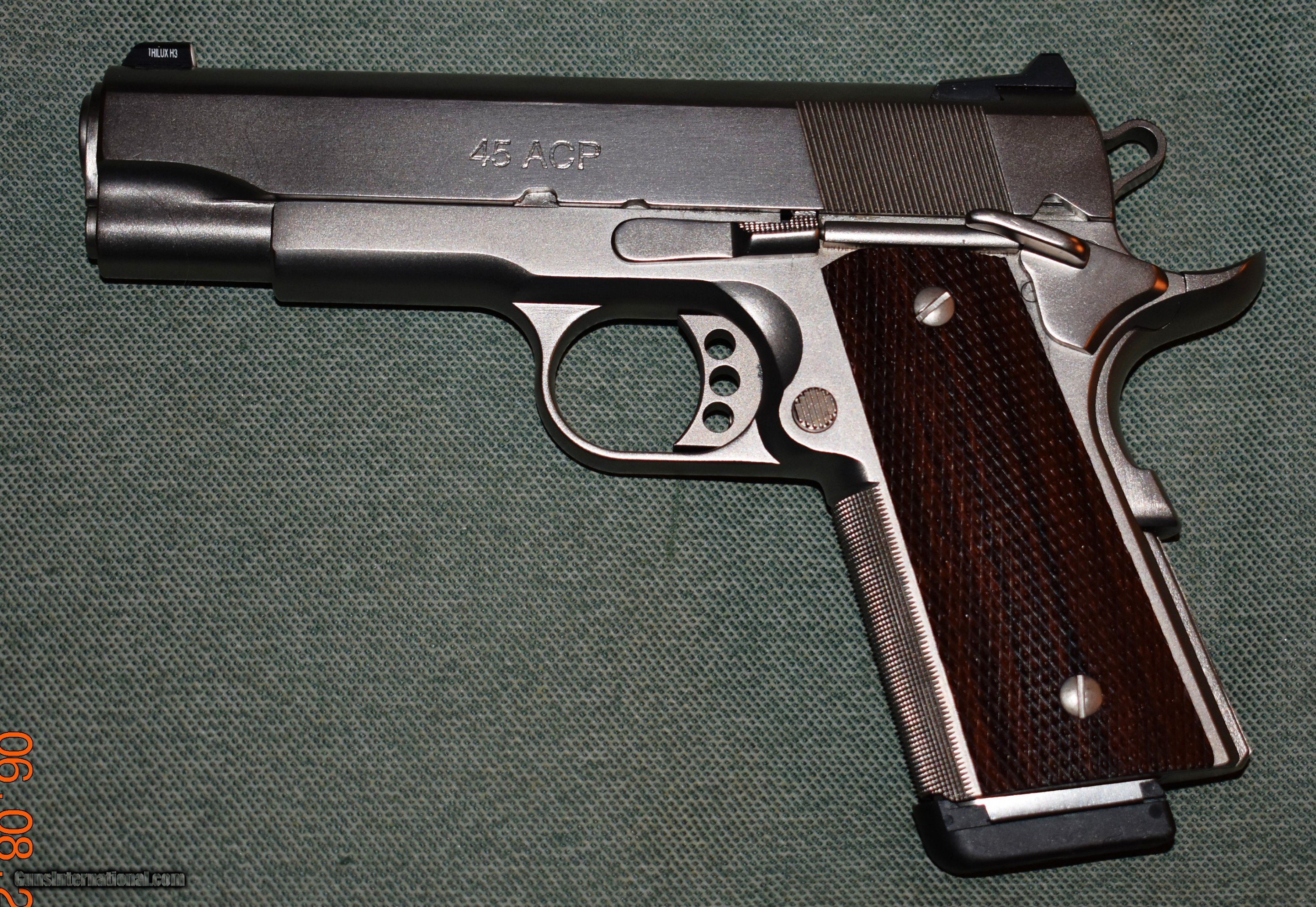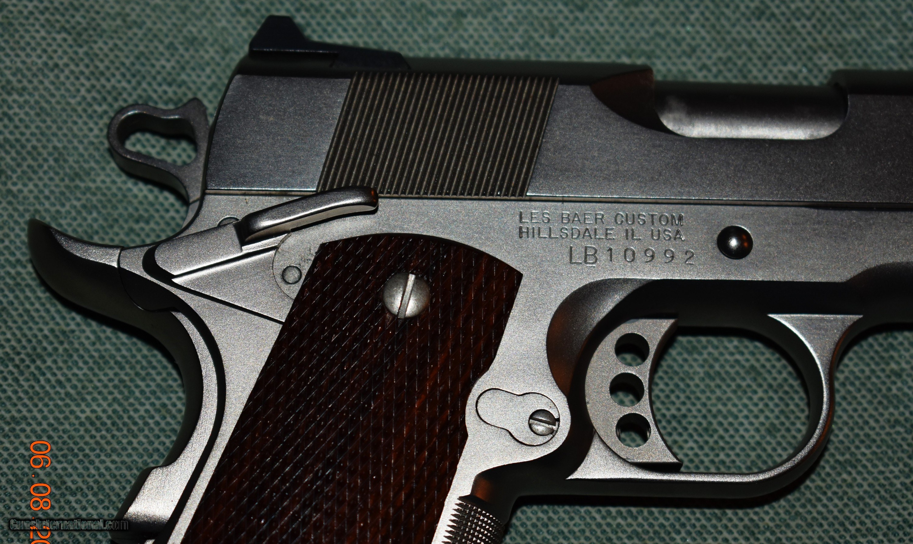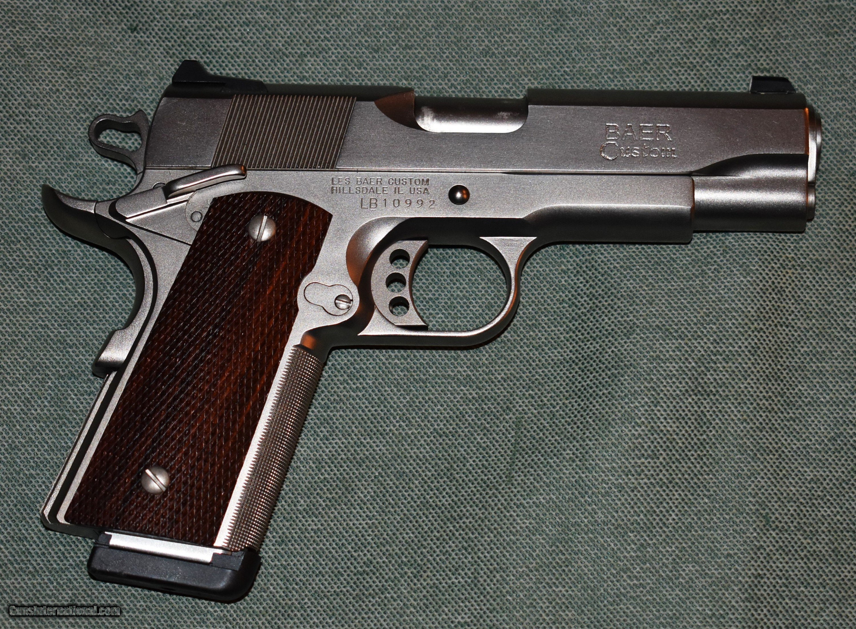 Description: Les Baer custom stainless finish Stinger in 45 ACP. Same size as a Colt Commander,this pistol makes a great personal carry gun. This one is in mint original condition. It has been test fired but remains in like new condition. It has checkered wood grips,a checkered front strap,ambi safety,skeleton trigger and hammer,and comes with 2 magazines. A fine defense pistol and a fun gun at the range. Price includes shipping to your FFL. SOLD Handgun Caliber: .45 ACP (.45 Auto) Manufacturer: Les Baer Custom Model: Stinger Serial Number: LB10992 Barrel Length: 4 Condition: mint Metal Condition: mint Wood Condition: mint Bore Condition: mint Action: Semi Auto |