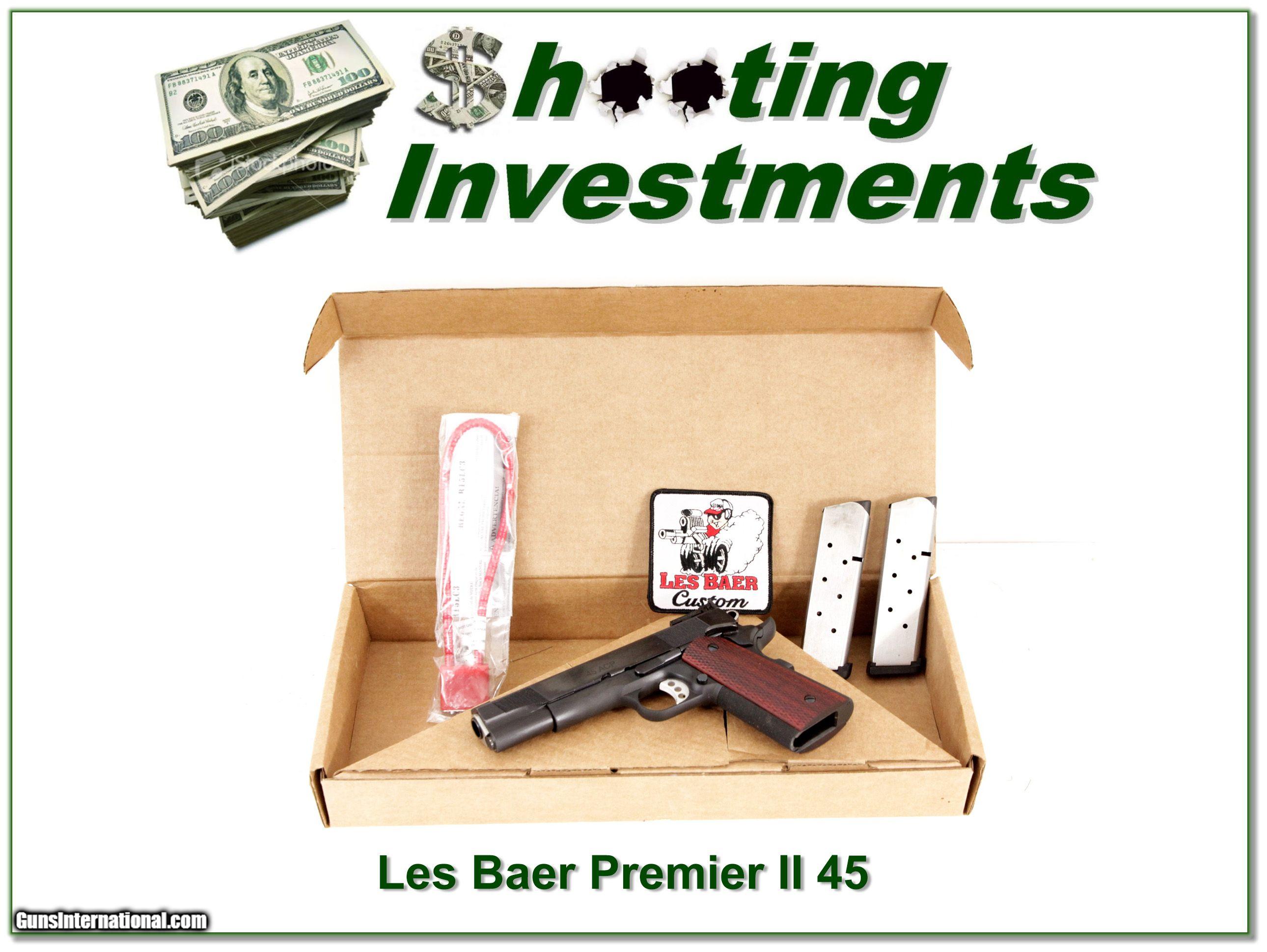 Description: This is a Les Bear Custom Premier II in 45 ACP. It comes as seen in excellent condition in original box with 3 magazines! I am selling this one on consignment and as such lay-a-way can’t be used. It does of course have the standard 3-day inspection. Shipping and insurance is $39. Please email me with any questions or larger pictures. (Consign your quality firearms with Shooting Investments for only 12%! Let me know if you have any you would like to sell!) 18-0326 Payment: Payment is by Money Order, Cashiers Check or Personal Check. I can now also accept MasterCard and Visa with a 3% convenience fee. PayPal can be used for some items but never firearms. Please let us know if you would like to pay via PayPal. Shipping: The shipping charge will be listed in each description. It is $39 for most long guns and $29 for most handguns. Some heavy guns or those insured for over $2000 will be higher. Shipments to Alaska and Hawaii are higher because air shipment is required. Most firearms are shipped on Tuesday and Thursday and usually in 5 days of receipt of payment. We package all shipments carefully and insure them. For long guns you can purchase a new Plano case for $19. They now cost us $22 when buying 100 at a time. Optics are shipped Priority Mail and most other non-firearm shipments are shipped First Class. Returns: Our return policy is simple. If for any reason you are not pleased with your purchase, you may return your item for a full refund of purchase price. Ammunition cannot be returned. It is important to us that you are happy. Guns cannot be fired or dissembled before returning them and they must be returned in the same condition as received. Notification of a return must occur with-in 3 days of receipt at your dealer. Shipping, convenience and dealer fees are not refundable and are the responsibility of the buyer. Lay-a-way: If needed, we offer a 60 day lay-a-way option on most firearms. It is 1/3 now, 1/3 in 30 days and 1/3 in 60 days. Lay-a-way firearm sales are final and if not completed the first payment cannot be returned. Consigning your firearms with Shooting Investments: We will help you get top dollar for your firearms. While most local guns shops charge 20% or more, our fee is only 12% with a minimum of $75. At your local gun shop it might take months to sell. Selling on-line provides instant access to thousands of interested buyers. You won’t find any other on-line dealer willing to sell your firearms for only 12% or listing every gun on 3 separate s. Selling through an House typically costs the seller 15% and the buyer an addition 15% (so 30%) and you have to wait several months to sell and longer to receive funds. If properly priced, we will sell your firearms in a few weeks. Send us an email or give us a call and we’ll explain how easy it is for you to get top dollar. Trading: Trading for use is really just buying your gun to re-sell. If you have a gun you want to trade, please email a picture and we will let you know what we can give or it. You will always get more if we sell it for you on consignment. Help for California Buyers: We are happy to ship to California. It is the buyer’s responsibility to make sure any item you buy is legal in your state. We are also happy to help with your purchase of a firearm from someone other than us. If you see a gun you would like to buy but the seller can’t or won’t ship to California they can ship to use and we’ll then ship it to your California dealer. The cost for this service is only $30 + shipping. Let us know if we can help! SOLD |