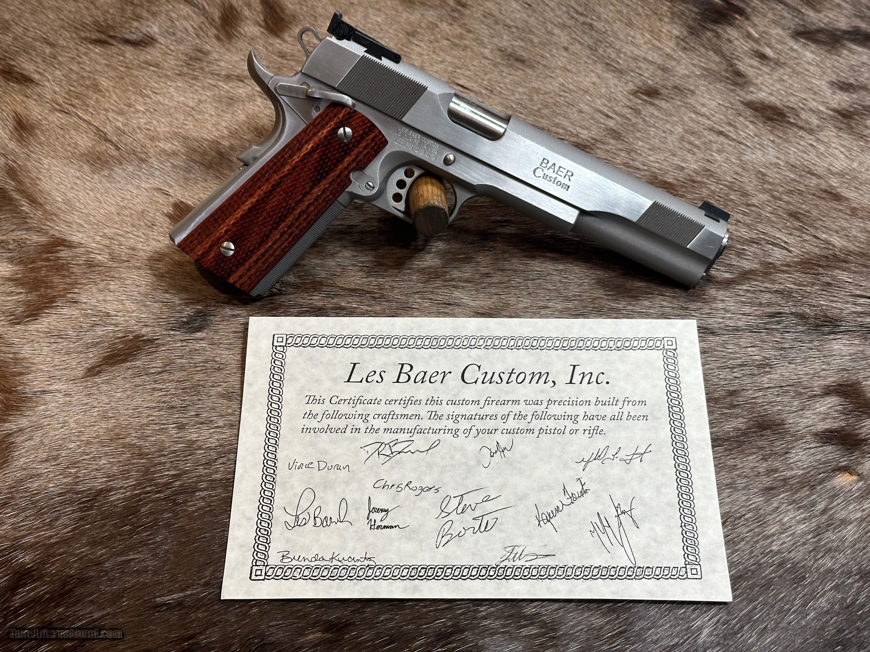 Description: LNIB LES BAER CUSTOM CONCEPT V STAINLESS 6" LONG SLIDE 1911 45 ACP, DISPLAY MODEL, UNFIRED - LAYAWAY AVAILABLE Les Baer's line of Concept pistols pushes the envelope for the perfect combination of ahead-of-the-art design, true custom craftsmanship, unparalleled performance, and the best value in the firearms industry. All Concept© pistols come with a crisp 4 lb. pull and all are guaranteed to deliver 3" groups at 50 yards. FEATURES OF THIS GREAT CUSTOM 1911 INCLUDE: