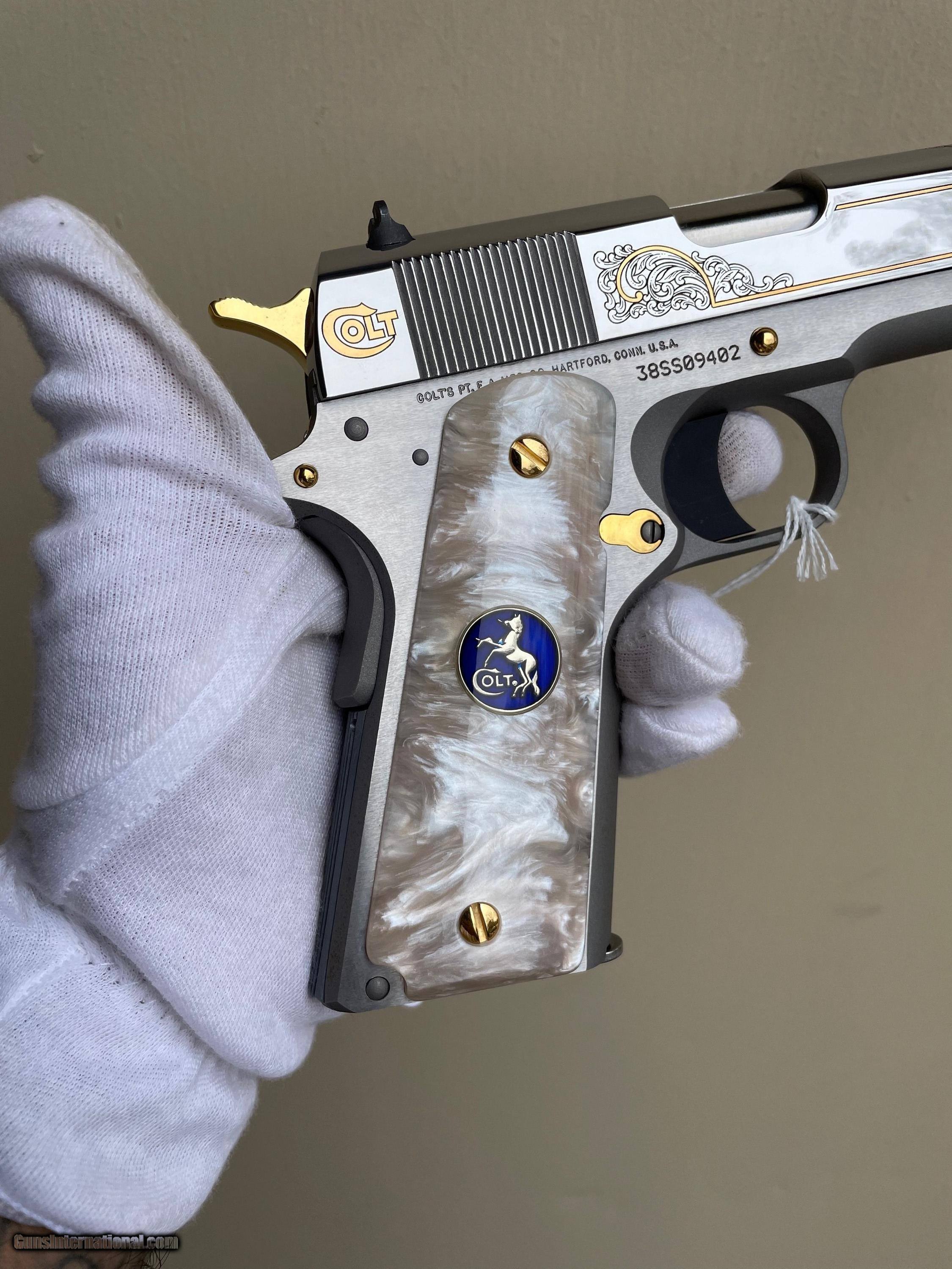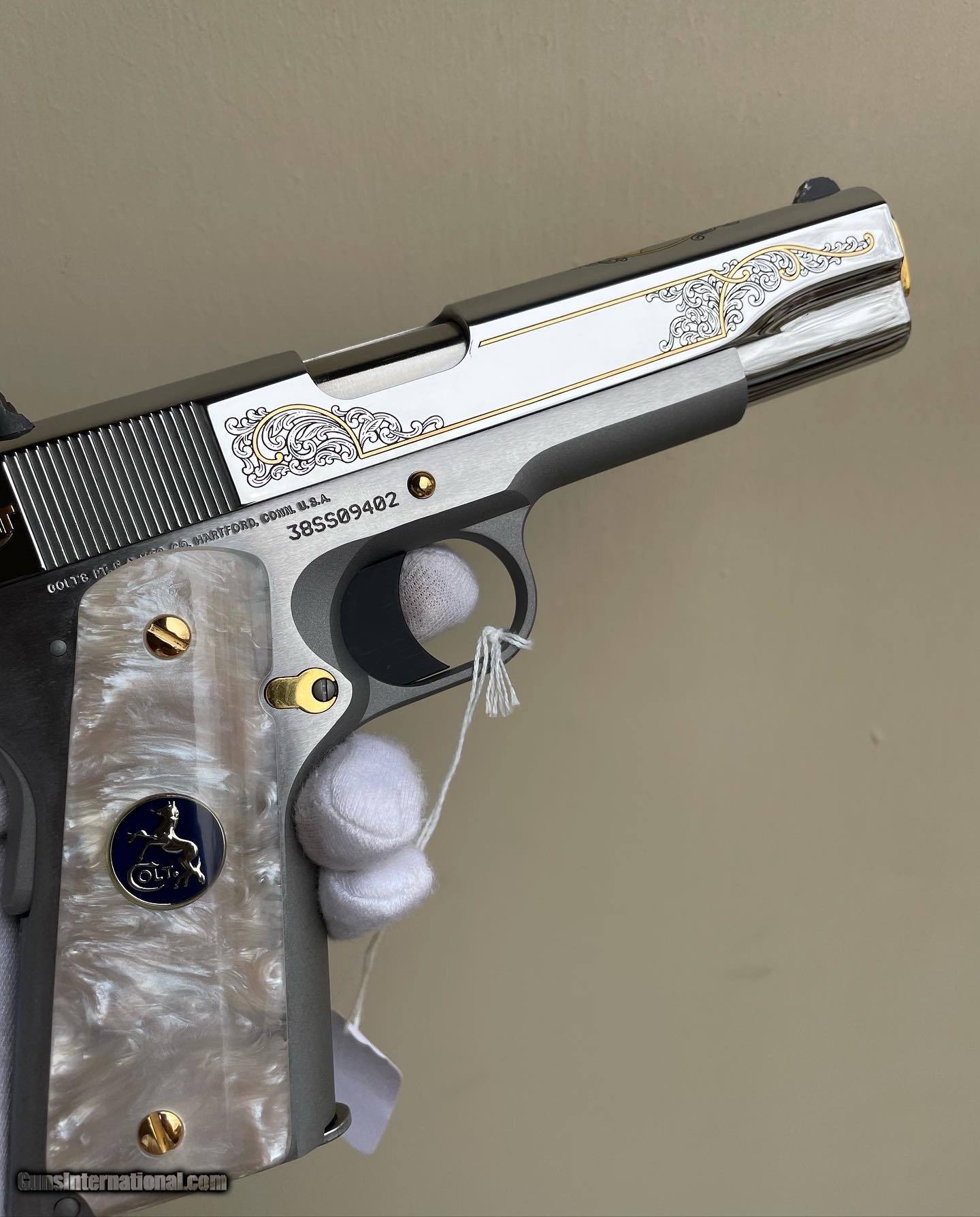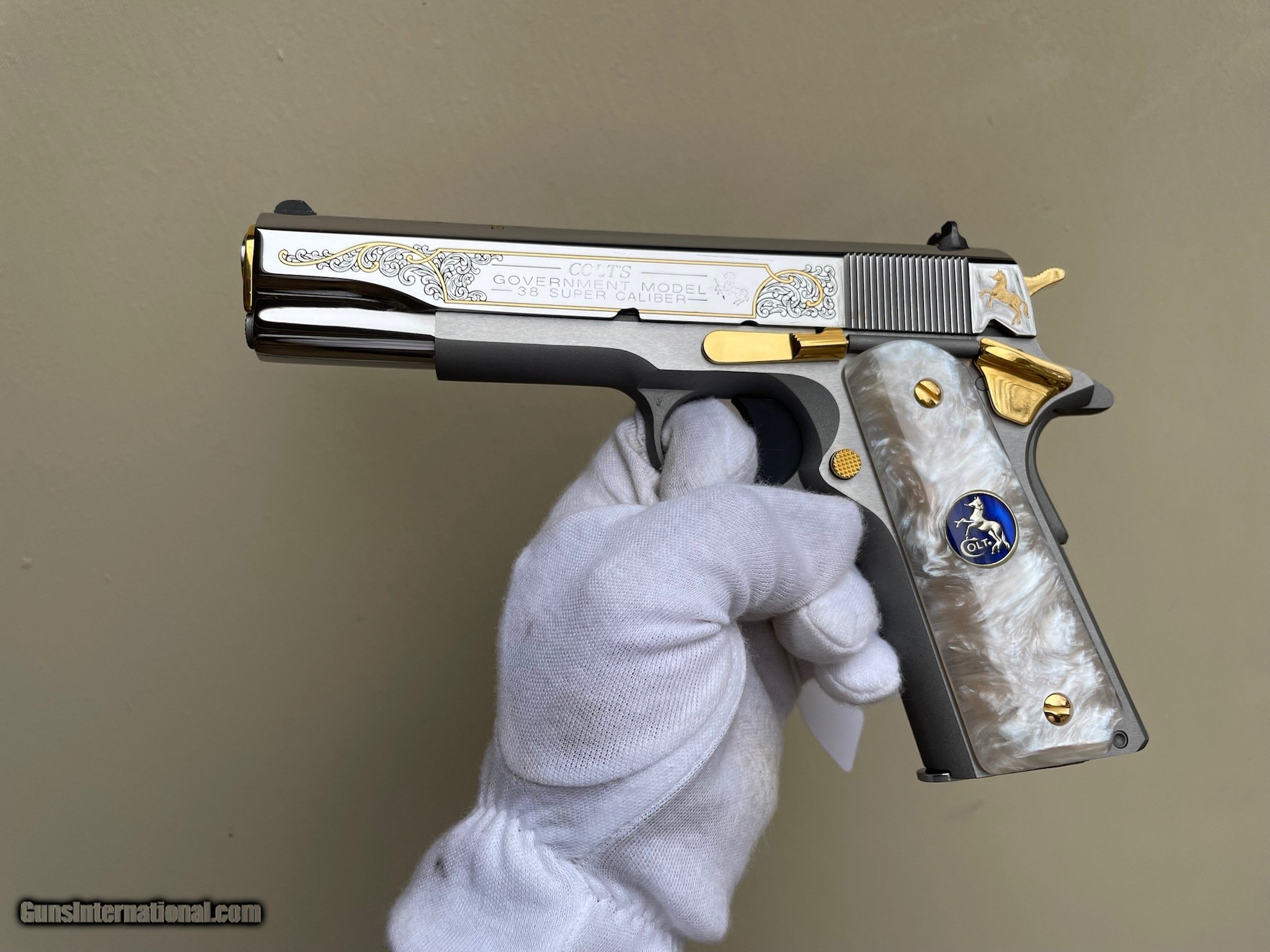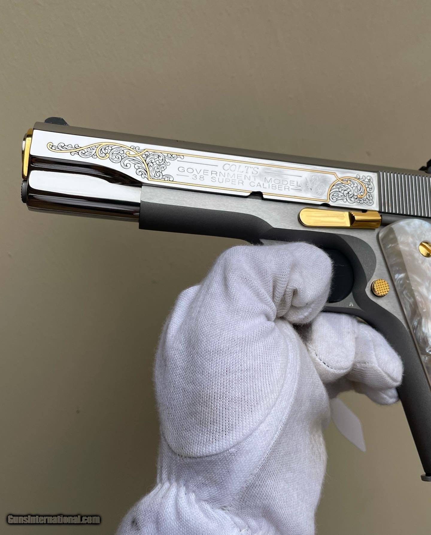 Description: Lew Horton Exclusive Premier Super 38 new in original box. Factory engraving with gold inlay on a bright stainless slide and brushed frame. Shipping $35 this pistol is not California Compliant. Feel free to call with any questions. SOLD |