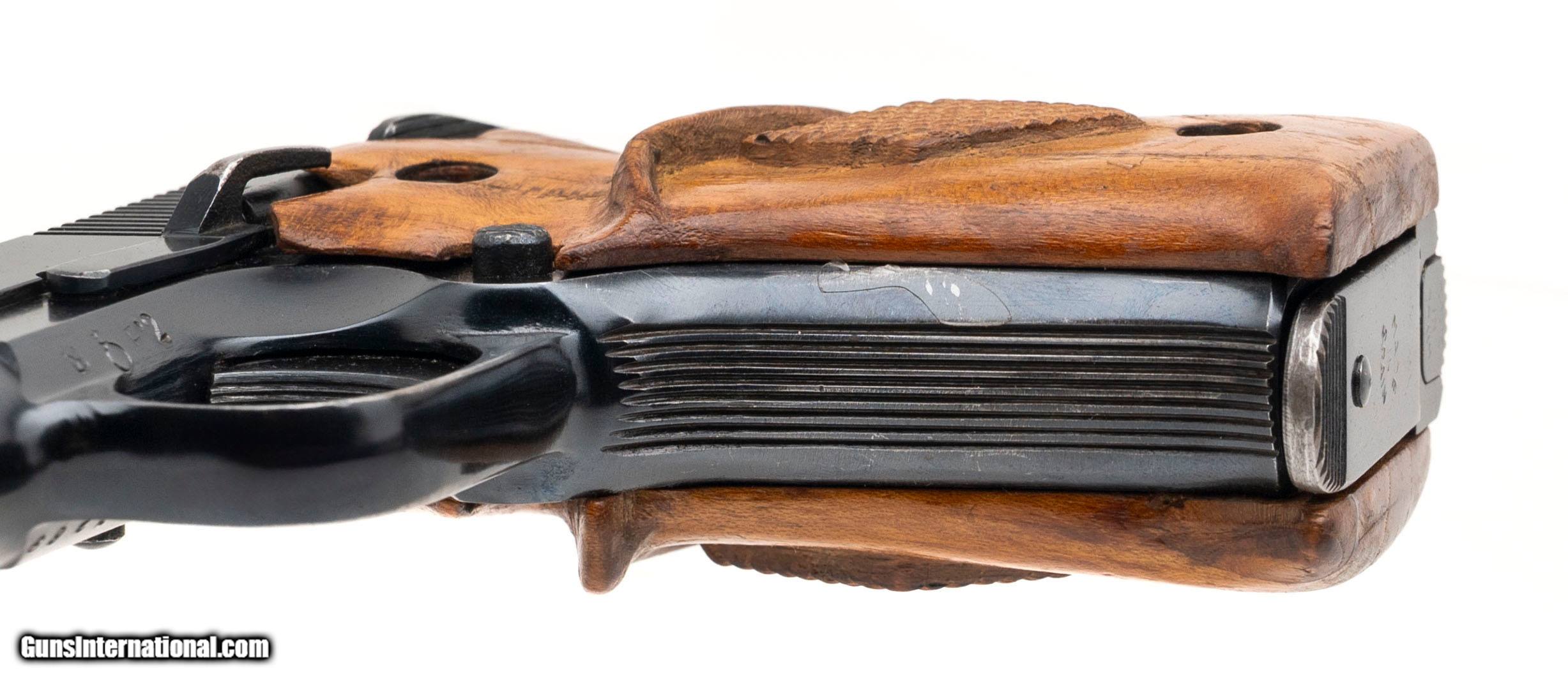 Description: "SN: A87269. Modern production, .22LR with a 3.5"" vent-rib barrel. Bore is very good. Spanish made single-action only rimfire pistol imported by Stoeger with a manual thumb-safety, blued finish, and custom wood grips. Finish & grips show minor marks. Includes case. Overall condition is very good. Price: $499.95 Contact Seller |