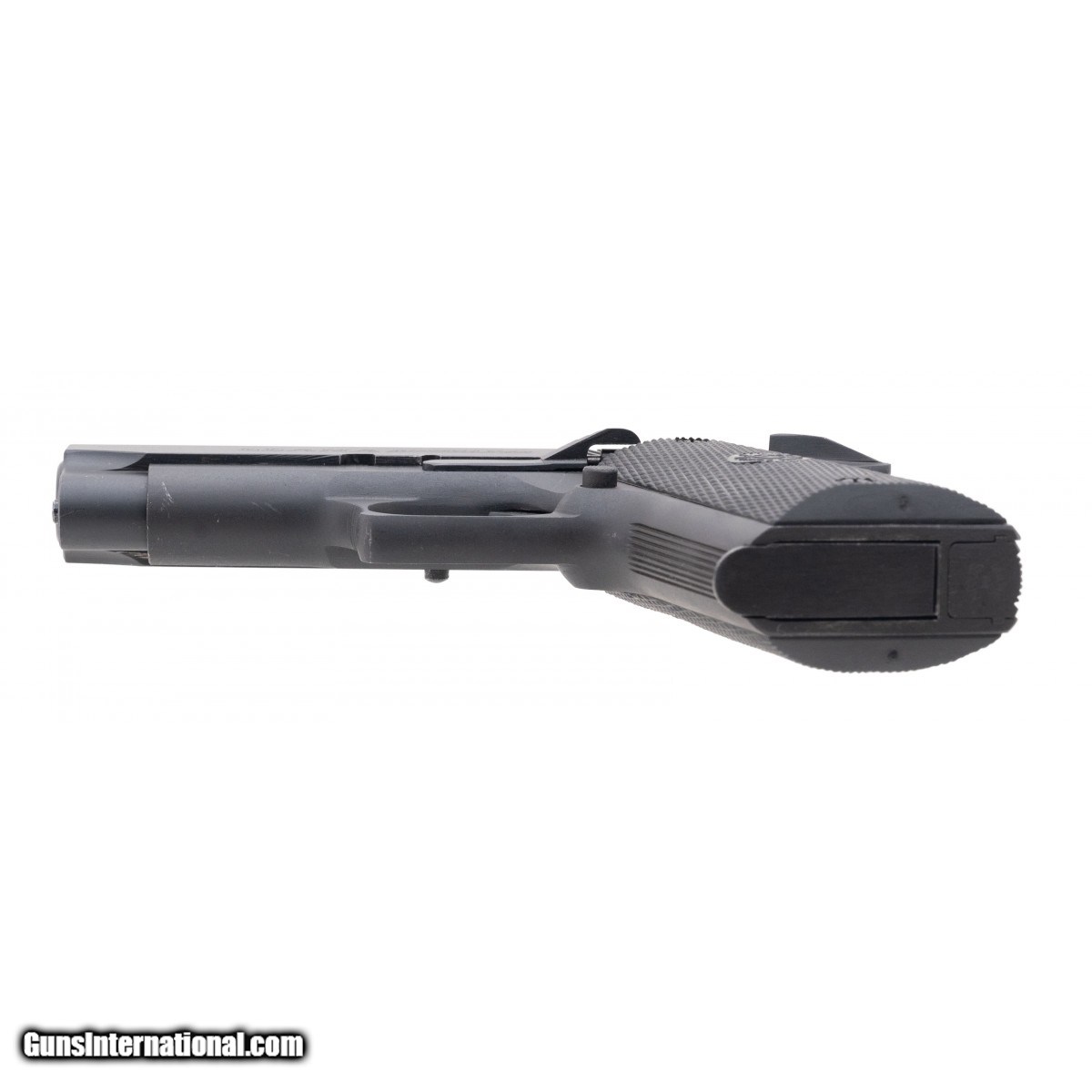 Description: "SN:07-04-12657-96. Manufactured circa 1990's. 45 ACP with a 3.5"" barrel. Bore is in excellent condition. Double stack steel frame 1911 with checkered hard rubber grips and 10rd capacity. Overall very good condition. SOLD |
