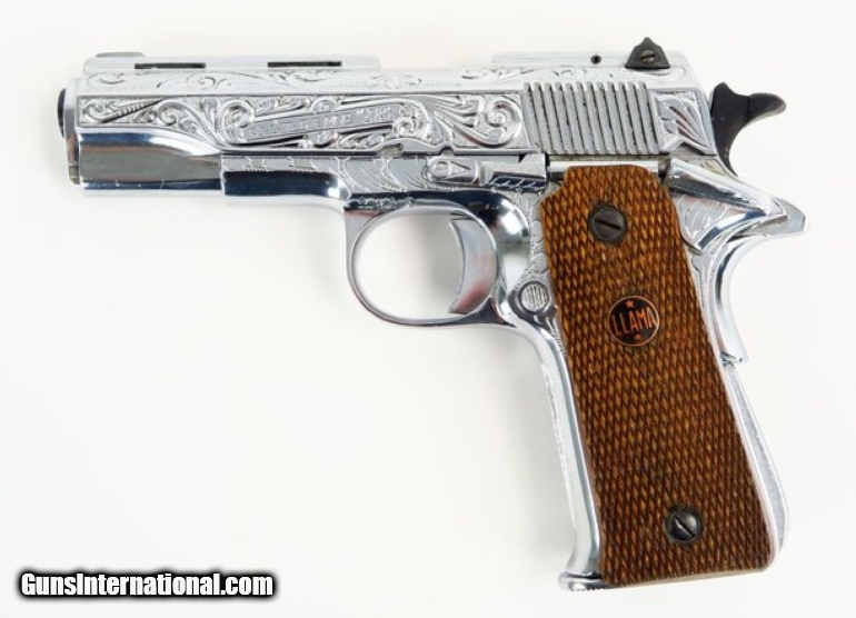 Description: Llama III-A Deluxe caliber pistol. Factory engraved pocket auto with chrome finish in excellent condition. SOLD |
