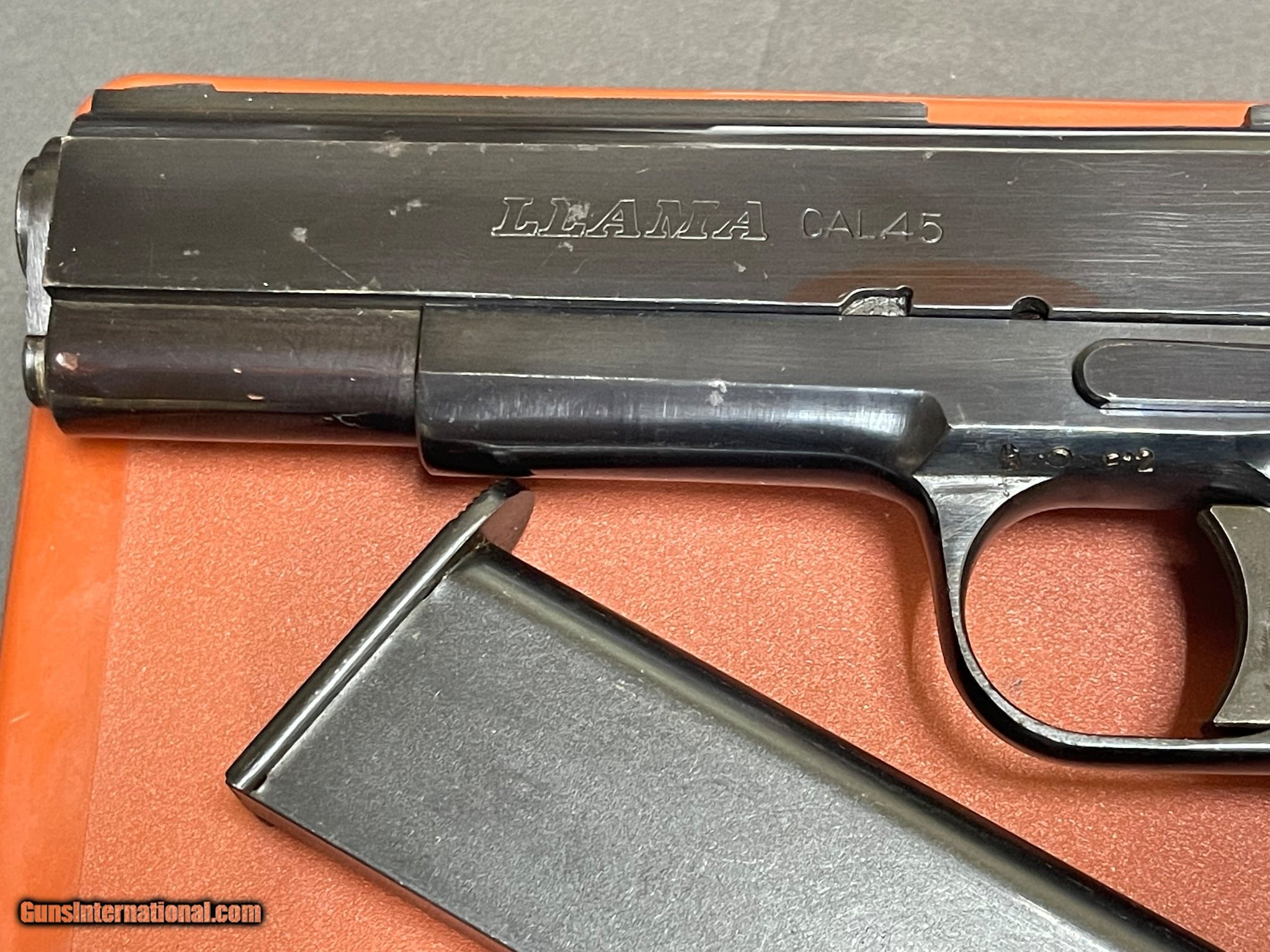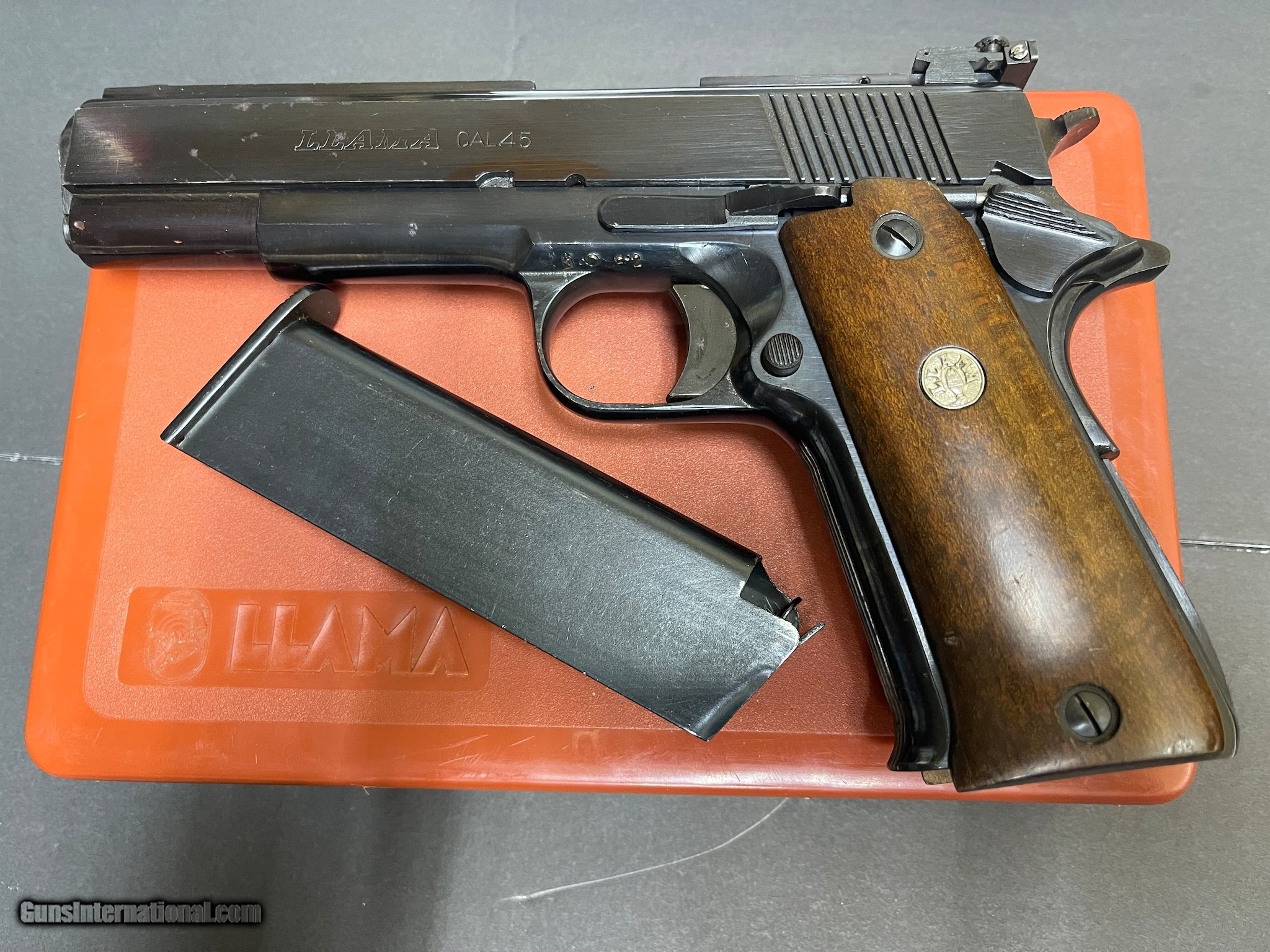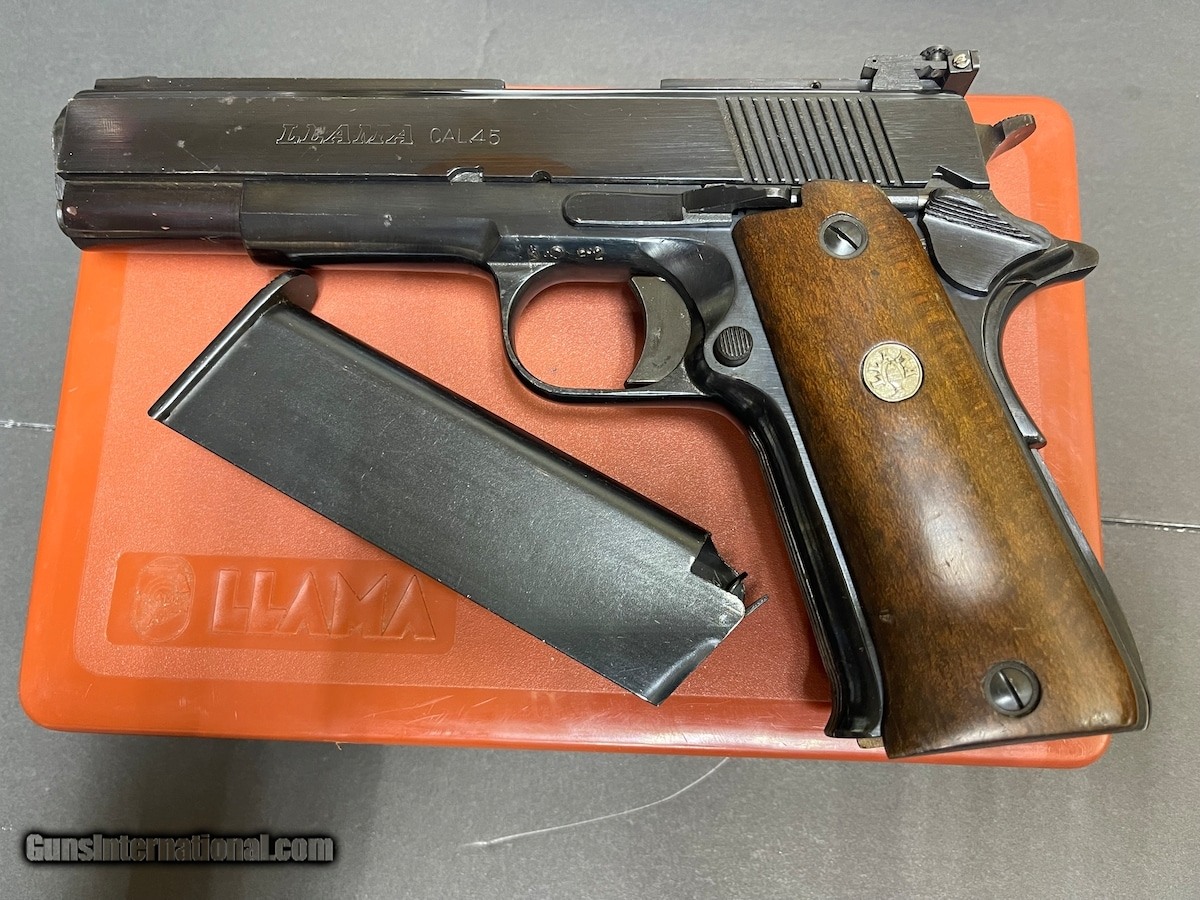 Description: Guns Listing ID: 473734 The Llama 45 is a Spanish-made variant of John Browning‚‚s 1911. These pistols were produced for decades before the company closed down in 2000. Llama 45s are popular on the civilian market. They‚‚re well-made yet affordable compared to most military-issued 1911‚‚s. This Llama 45 has hard WOOD grips and is rated in good condition. LITTLE WEAR, PITTED, PLEASE CHECK OUT MY PICTURES. BLUEING IS RUBBED OFF ON RIGHT SIDE. One 8-round magazine is included. ORIGINAL BOX, MANUA SOLD Manufacturer: LLAMA Model: LLAMA 1911 VITORIA Caliber Info: .45 ACP Condition: Used - Non-Certified Barrels: 5 BARREL Finish: BLUED |