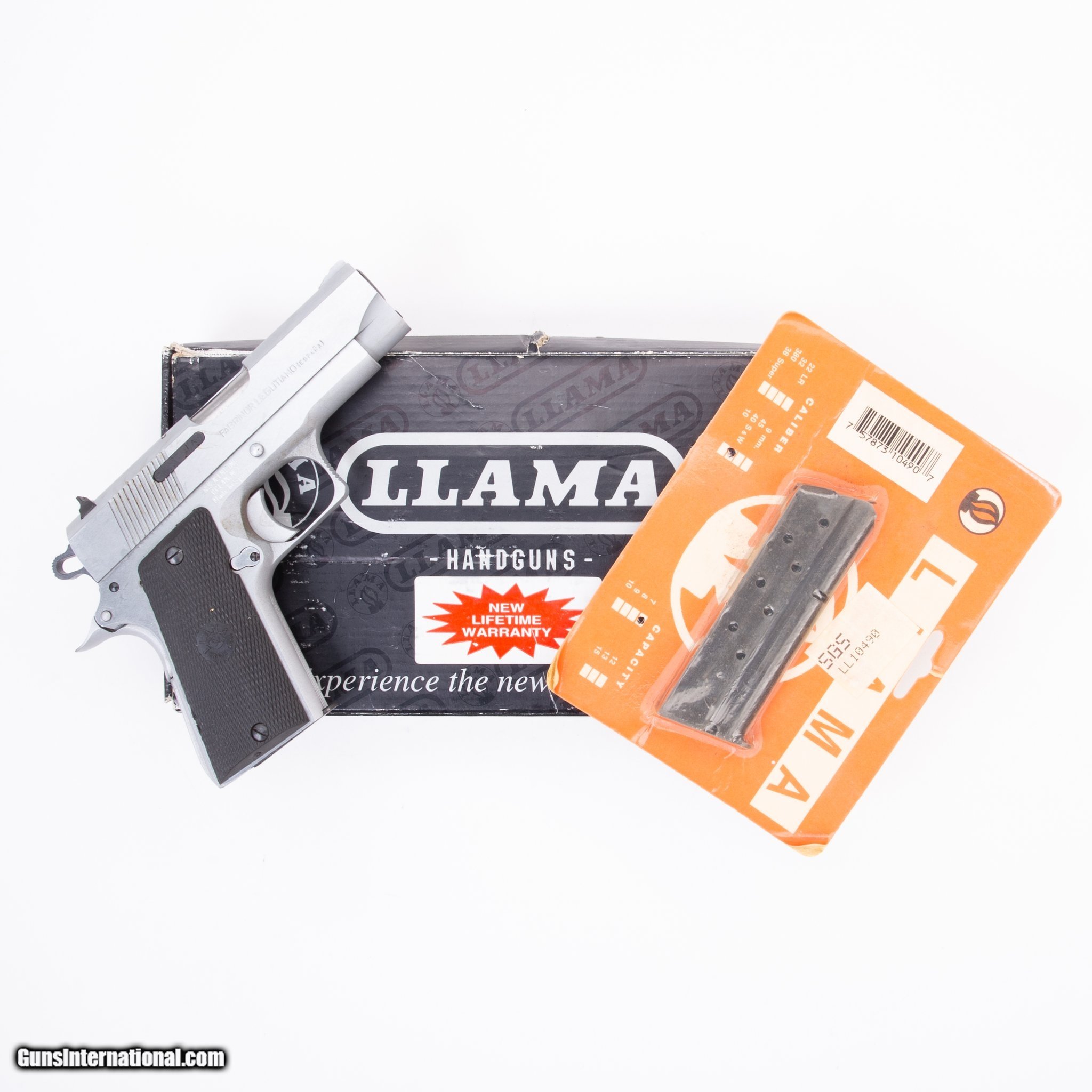 Description: Guns Listing ID: 474614 This Llama Minimax includes the original box, owner‚‚s manual, and two 7-round magazines. Get the best bang for your buck when you get a Certified Used Firearm . When you see the Certified Used stamp on any of our firearms, you can be confident that you‚‚re getting exactly what you want – a gun only in very good to excellent condition and held to the highest quality standard. All Certified Used Guns come with a ‚‚no questions asked‚‚ return policy . PLUS, ALL CERTIFIED USED GUNS SHIP F SOLD Manufacturer: LLAMA Model: LLAMA MINIMAX Caliber Info: .40 S&W Condition: Used - Certified Barrels: 3.50 Action: SEMI AUTOMATIC Finish: STAINLESS Weight: 2.2 |