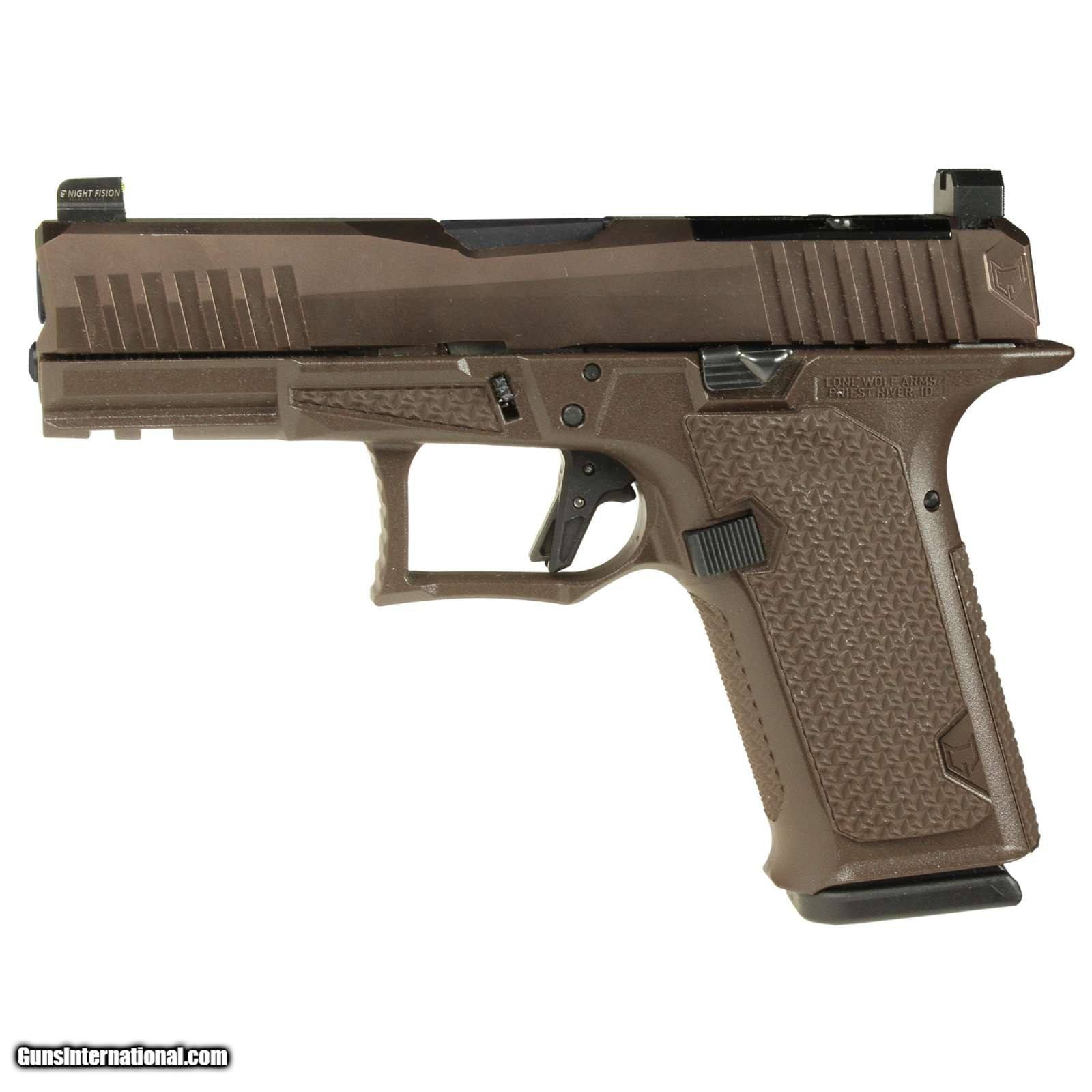 Description: Guns Listing ID: 618875 Lone Wolf Distributors Dusk19 9mm Semi-Automatic Pistol, Bronze Slide, RMR Compatible, Night Sights, 4.02\" Black Barrel, Matte Finish, Bronze Slide and Brown Frame, RMR Compatible Optic Cut, Front Night Sight/ Black Rear, 15 Rounds, 1 Magazine Manufacturer: LONE WOLF DISTRIBUTORS Model: DUSK 19 Caliber Info: 9MM LUGER (9x19 PARA) Condition: new Barrels: 4.02" BARREL Action: SEMI AUTOMATIC Finish: brown Price: $566.99 Contact Seller |