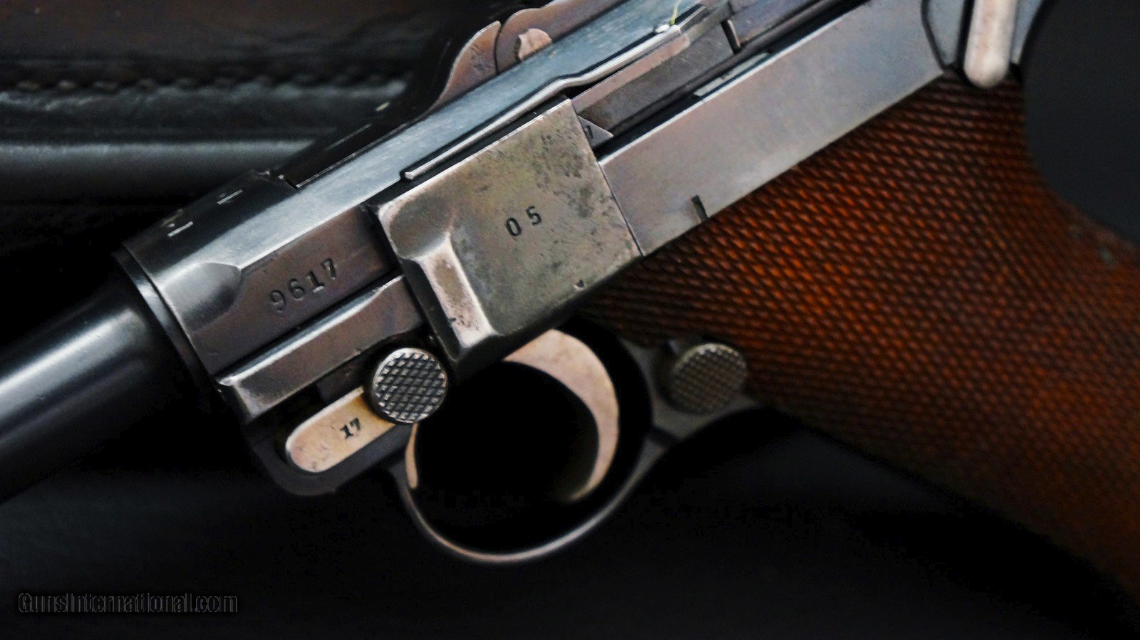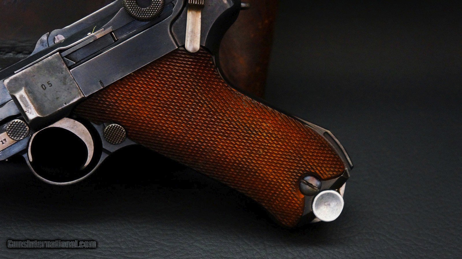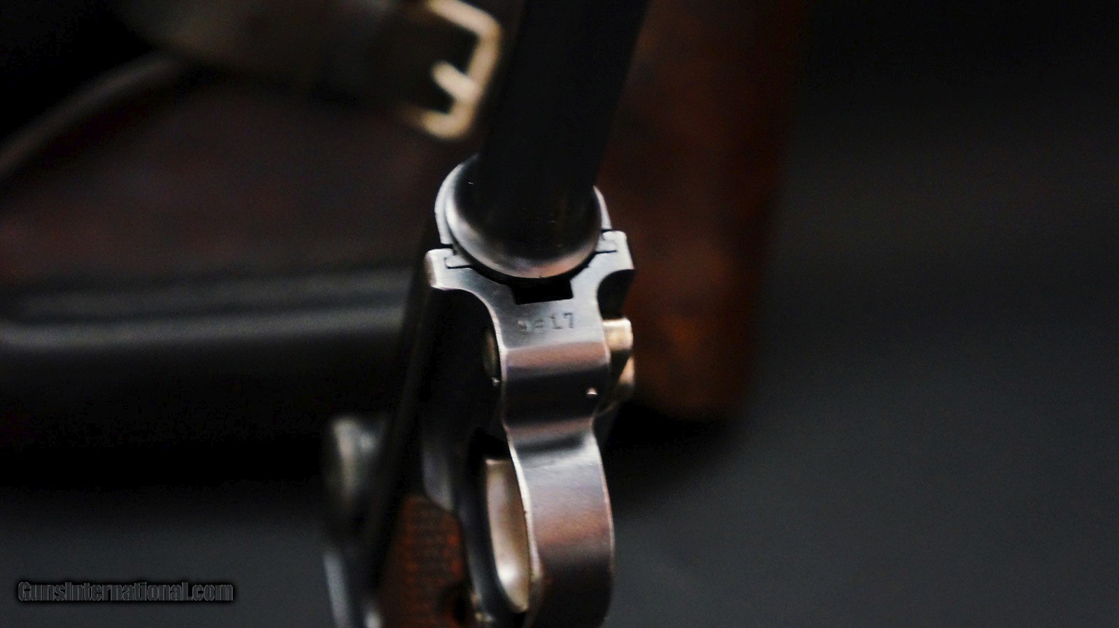 Description: ~ 1920/1920 Double Date P.08 Police Luger 9mm – Rarest of the 1920 Double Dated Luger's Description: This is a beautiful example of the Model 1920 Manufactured Pistole-08 Military & Police. The chamber marking represents the military contract year of production, and this example is a 1920 dated Luger in 9mm Parabellum. Most Double Dated Luger's are 1920 or 1921 over 1910 through 1918, A very few examples exist which are dated 1920/1920, this is one of those rare variants. The DWM monogram is on the toggle link with the extractor marked 'Geladen' (Loaded). This example has all matching serial numbers, 9617, no suffix, except for the police sear safety side plate which bears 05. The thumb safety is marked "Gesichert", when exposed (safety down) it is in the safe position. This Luger has the shortened sear, enabling the gun to be cocked with the safety engaged, a feature that was adopted in 1916. The barrel is 4" (100mm) and has deep lands and grooves with a bright, clean bore. The rear sight is "V" cut fixed with a front dovetailed sight. The frame has the stock lug. Serial number is displayed on the left side of the receiver, the locking bolt, the sear bar safety, the extractor, the forward toggle link, the front of the frame, under the barrel, and on the side of the trigger. Original grips are finely cut diamond shaped checkering made from walnut. The Luger has both the sear safety and a magazine safety which has been deactivated, as were installed on the police guns in 1929-34. The magazine safety was soon abandoned and removed, and to find one complete on a Luger is rare. Magazine Safety: The magazine safety consists of a "U" shaped leaf spring with two extensions, fitted into the left side of the frame under the grip with a hole drilled into the frame. One of the extensions fits into the front and lodges behind the trigger, while the other end fits through the frame into the magazine well. (The tip has been deactivated, leaving the clip present.) With the magazine in place, the extension is pushed left and out of the path of the trigger. Removing the magazine allows the safety to move to the right so the bar moved behind the trigger and prevents it from being pulled. This was patented by Carl Walther in October 1932. Sear Safety: During the 1920s it was determined that one could remove the side plate on a loaded Luger, exposing the sear, and by pressing on the sear, discharge the firearm. The Sear Safety consists of a spring bar installed on the left side of the receiver, above the sear bar lever. This bar required a modified side plate be installed. This piece has a police holster with a magazine pouch. The leather remains supple without damage. Two original police magazines, one scrubbed, numbered to the piece, stamped “1”, the second bearing another serial number, stamped “2”. Mechanically in perfect working order. S.M. 229. - Prussian Police (Schutzpolizei) Unit Marks - Muenster district – Number 229 “The Weimar Era Lugers dated 1920 and 1921 are of new manufacture and were not reworked from surplus Imperial Lugers. During 1920 and 1921 DWM was the only company manufacturing Lugers in Germany.” ~Jan Still (RIP) Curio/Relic: Yes Handgun Caliber: .9 MM Manufacturer: DWM Model: P.08 Serial Number: 9617 Condition: 95% Metal Condition: 96% Wood Condition: 96% Bore Condition: 98% Stock: Walnut original Finish: blue Manufacture Date: 1920 Extras: #1&2 Police Magazines and Holster Price: $2,950.00 Since 1985 Proprietors in Classic Arms & Fine Restorations - Mob Guns Inc ~ Art Deco Steel ~ Visit us online at MobGuns to view our Restorations, Options, Inventory and Terms of Sale. Call us for assistance - (877) MOB-GUNS ~ ((877) 662-4867)) Contact us by email 'Sales at MobGuns dot com' Offers and trades of all types are welcome. Shipping is $50.00, FFL to FFL within the Continental US. (Long guns & large boxes higher) Insurance is optional at .018%. Once the courier is in possession of the parcel, we cannot be held responsible for its safe delivery. Payments accepted are personal check, certified bank check, either must be emailed or sent overnight. We accept Zelle. We do not accept paypal or any money orders. Bank wire transfers incur a $35.00 fee. We strive to ship the day after payment is received. Bid solely based upon condition shown in the photographs and the description, as nothing else is implied nor offered. There is no guarantee or warranty other than what is offered through the manufacturer. We are a licensed FFL, and we will ship to your local FFL with a signed copy of their license, email and contact number. If you do not have an FFL, we will be happy to locate one within your ZIP code. All items sell as is and are accurately represented through our original photographs. Should you require additional information, additional photographs, we will be happy to arrange for that. Sales are considered final, though it is our goad to provide each client with personal service and to make sure they are happy with their acquisition. All firearms are operational unless so noted, sold as collectible artifacts, intended for display. Should live ammo be used, it is solely the user’s responsibility to take all necessary precautions to make sure the arm is safe for use in a responsible and legal manner. All firearms should be inspected by a qualified gunsmith. The user takes full responsibility for any use of the firearm and accepts all responsibility. The seller cannot be held responsible for any injury, damage or death resulting from the use of any arm purchased. The owner is solely responsible for the safe-keeping, care and handling of the arm. Please see our site for terms and conditions of sale. Modern firearms must be transferred through a licensed FFL dealer in your area. A C&R license is acceptable for C&R firearms only (guns determined to be C&R eligible by ATF and/or guns known to be at least 50 years old). New York Residents: Handguns cannot be shipped d