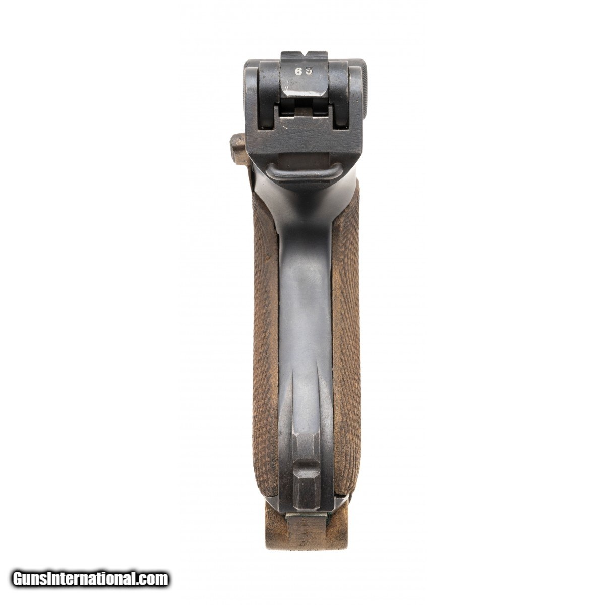Description: " This WWI 1918 dated Erfurt military P08 all matching Luger pistol is in very fine condition. About 175,000 were made in 1918. The 4' 9mm barrel has a good bore with some firing erosion. The gun retains apporx. 97% blue and 95% straw. All numbers, including the firing pin, hold open, magazine, and grips, match. The chamber is dated 1918 and the toggle has the crown over ERFURT logo. The grips are excellent with sharp checkering. The action functions correctly. This 1918 WWI Erfurt Luger would fit any collection. SOLD Curio/Relic: Yes |