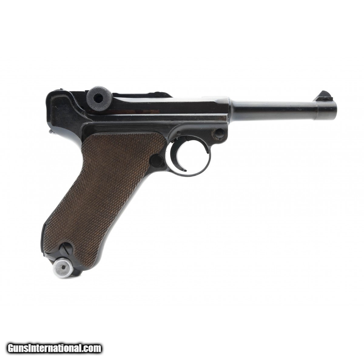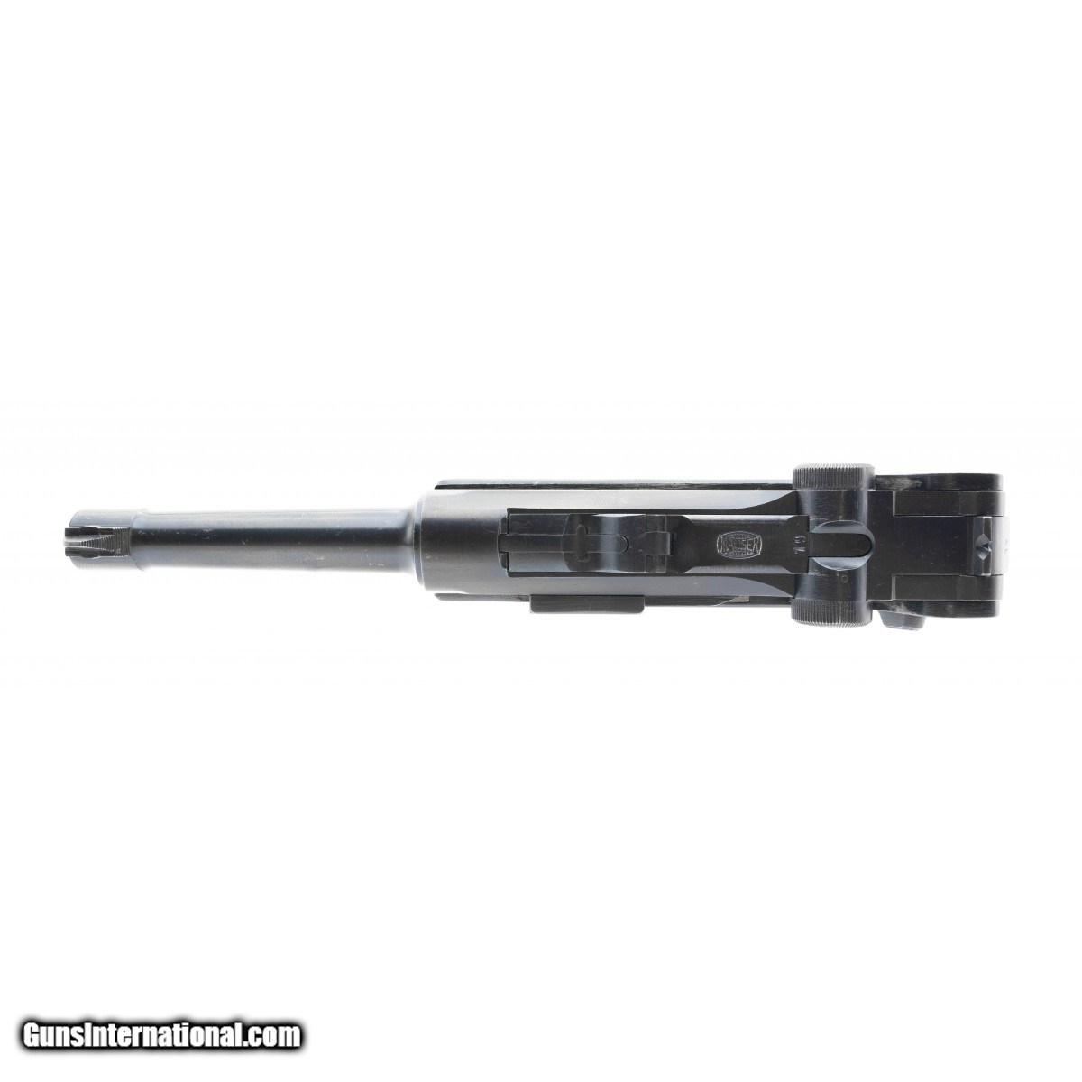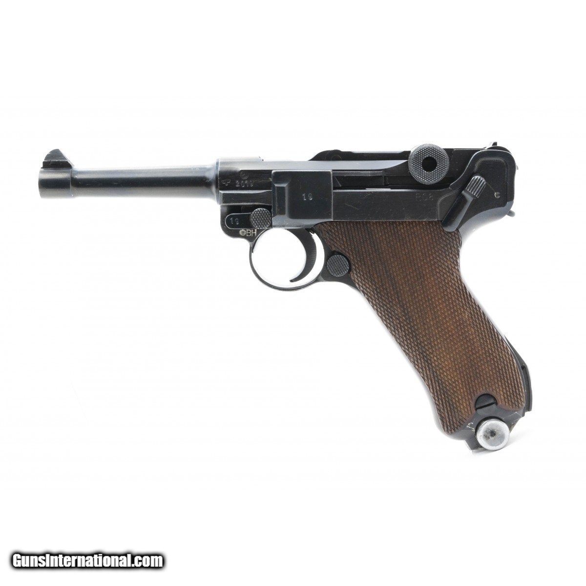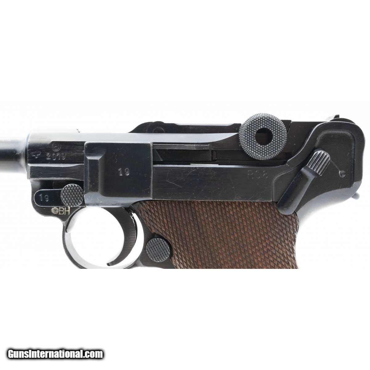 The Bundes Heer Lugers were post-WWII reworks of captured and surrendered Lugers for the Austrian Federal Army, the Bundes Heer. The key identification feature is the Austrian BH proof on the left side of the receiver just below the takedown lever. It appears that only a couple thousand were reworked. The 4"" 9mm barrel has an excellent bore with bright, strong rifling. The gun retains approx. 97% of its rework finish. The toggle has the Msuser banner. The serial nimber, 2019, is on the front of the frame and left side of the slide. The small parts have either 19 or are unnumbered. The grips are unnumbered and the mismatched alumnium base magazine has eagle over 37 proofs. The grips are excellent. The action functions correctly. Don't miss this very scarce WWII Mauser rework for the Austrian Bundes Heer.
