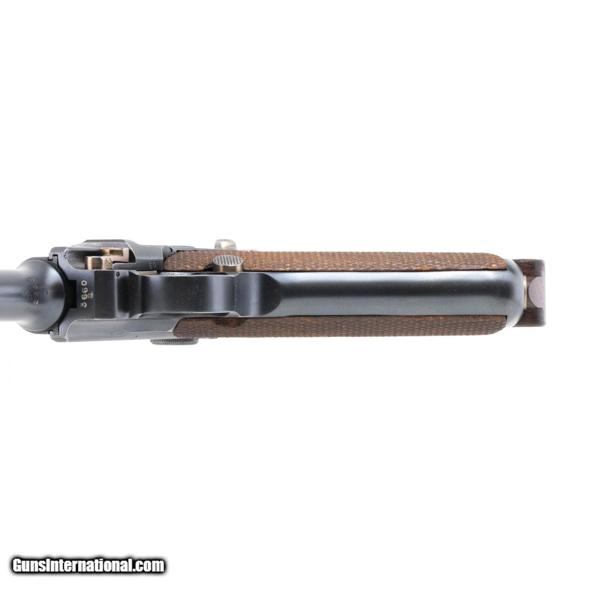 Description: " Exceptional 1908 Commercial Navy Luger. Barrel is 6"". Serial number 3660A. Serial numbers are matching. Correct magazine that has the concentric circle plug. (Magazine is un-numbered.) Right side of chamber is marked ""Germany"" for export. Bore is mint. A rare variation! SOLD Curio/Relic: Yes |