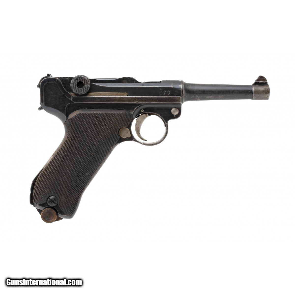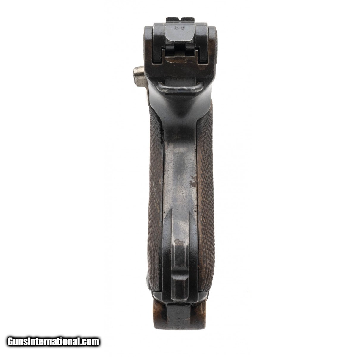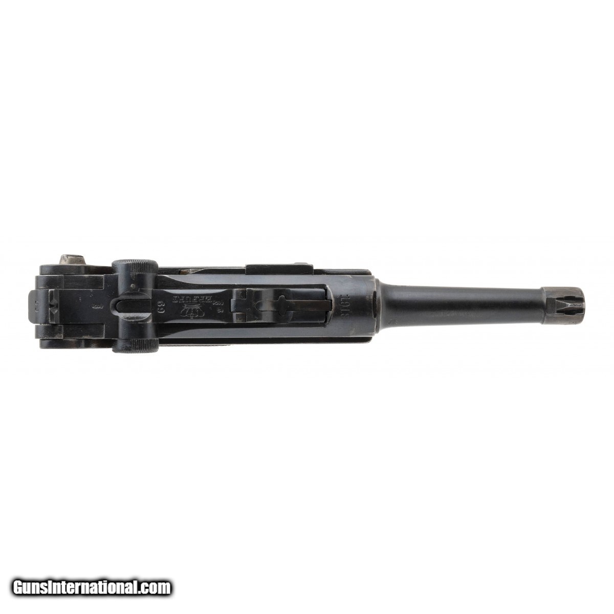 Serial No. 8369I, made in 1918 by Erfurt, 9mm, 4"" round Imperial marked barrel. Approximately 85% original blue remains with areas of thinning visible along the edges. Serial numbers are matching except for the magazine, grips only have ""6""stamped on the inside. Majority of straw remains with the trigger showing the most loss. Bore is shows frosting in the grooves, rifling remains strong. Action functions correctly. C&R