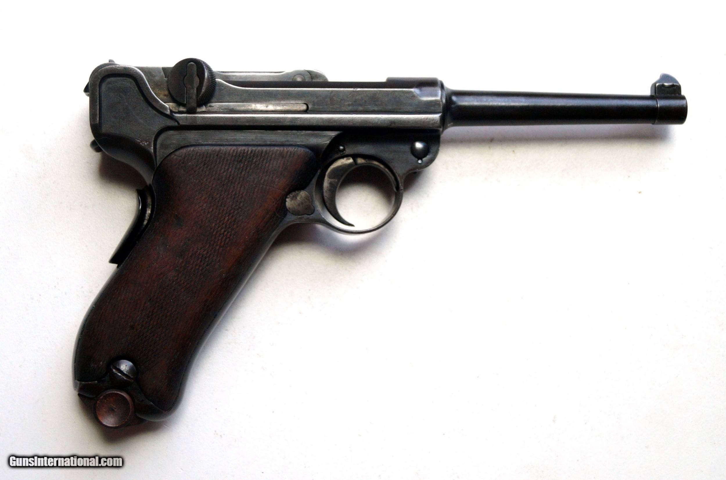 Description: THIS IS A 1900 DWM COMMERCIAL GERMAN LUGER, 7.65MM. THE LUGER IS IN VERY GOOD CONDITION. ALL ORIGINAL, NUMBER MATCHING, VERY GOOD BORE AND GRIPS (BOTH ARE NUMBERED TO THE GUN), MECHANICALLY CORRECT AND TIGHT. A VERY NICE RARE 1900 DWM COMMERCIAL GERMAN LUGER. SOLD Curio/Relic: Yes |